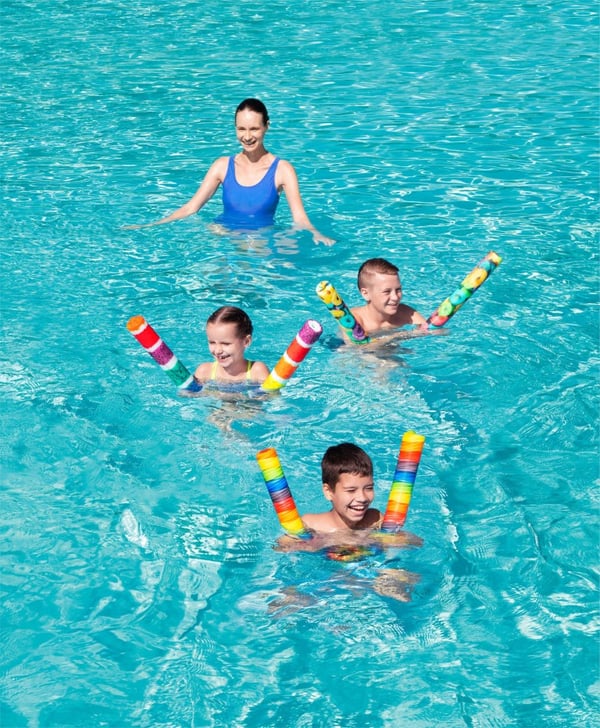 Färgglad och flexibel pool noodle för lek och träning i vattnet. Perfekt flythjälpmedel för barn 6 -12 år.