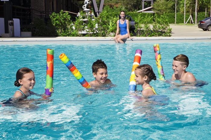 Med sin mjuka konstruktion i polyeten och ett slitstarkt yttre i spandextyg är nudlarna bekväma att använda utan att skava. Den flexibla designen gör att de enkelt kan formas, användas som stöd i vattnet eller byggas ihop till roliga flytande konstruktioner.