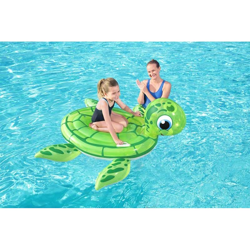 En stor och lekfull badkompis! Denna sköldpadda är perfekt för barn som vill flyta runt, leka och njuta av sommaren – med stabila handtag för extra trygghet.