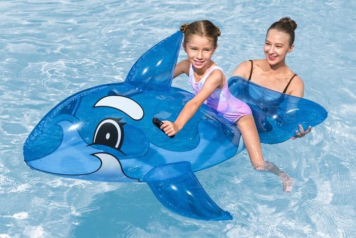 Uppblåsbart baddjur från Bestway med handtag. Perfekt för barn som vill leka, glida fram på vattnet och njuta av sommaren i pool eller vid stranden.