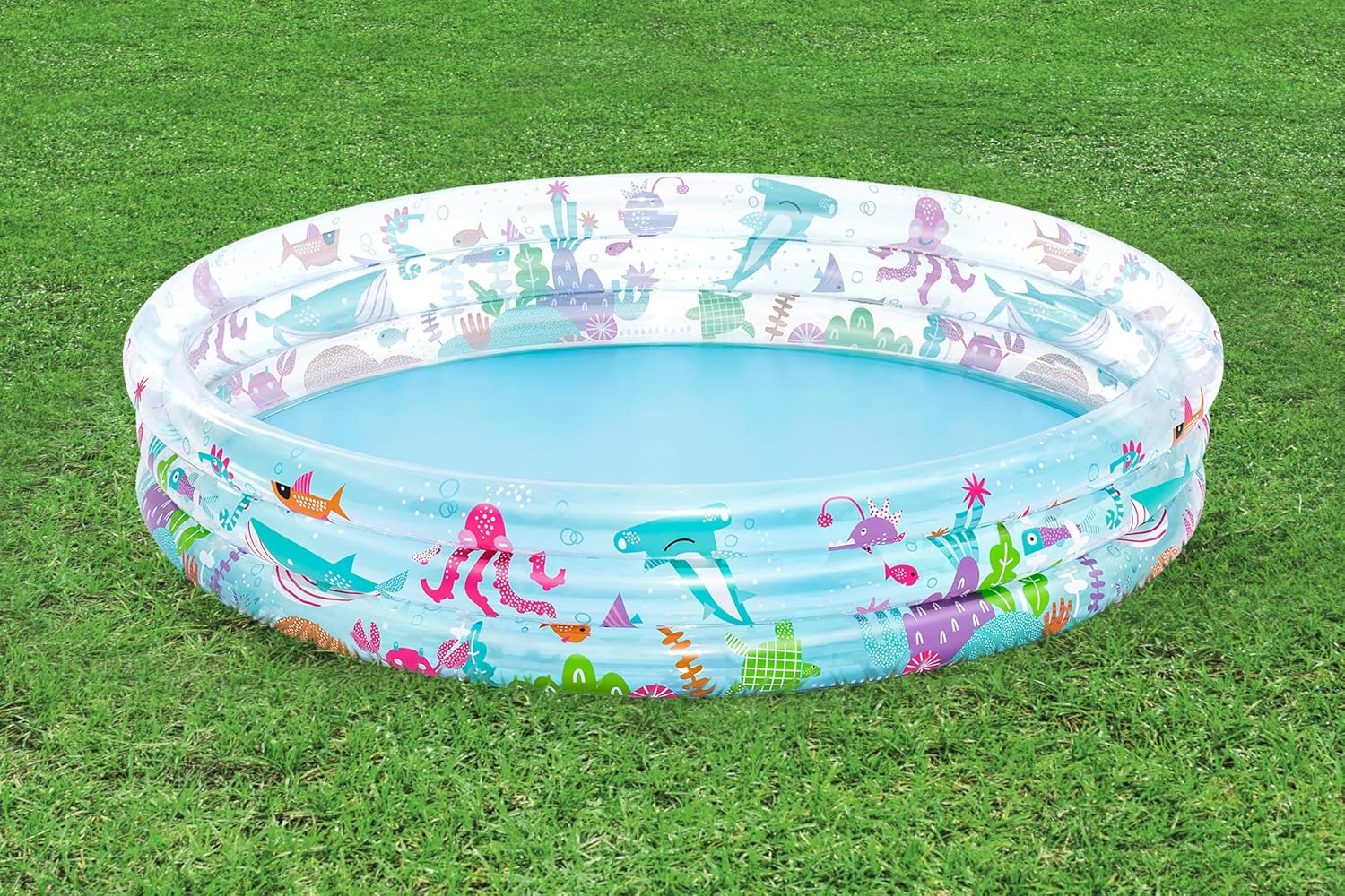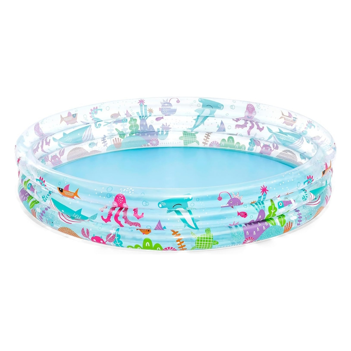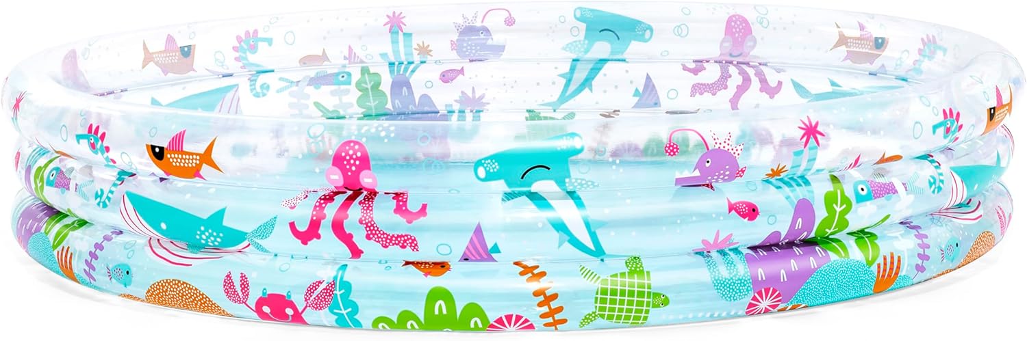 Låt barnen njuta av sommarens bästa stunder med Bestway Deep Dive barnpool! Denna lekfulla barnpool med tre lika stora ringar och färgglada undervattensmotiv bjuder in till timmar av plask, lek och fantasi.