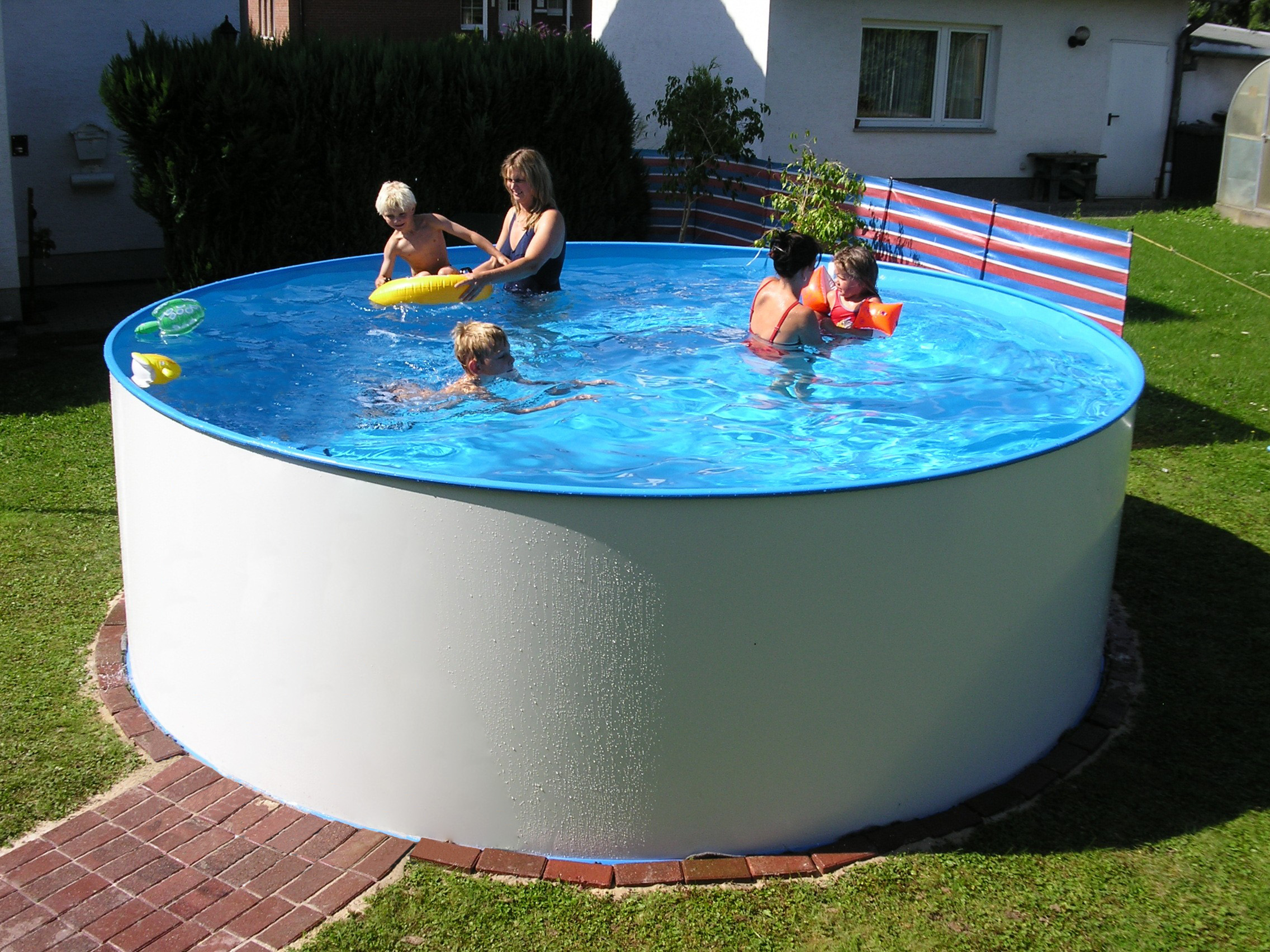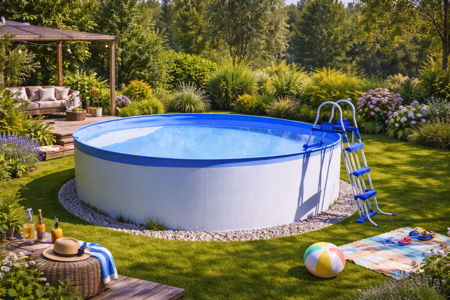 • Rymlig rund familjepool – perfekt för lek och avkoppling