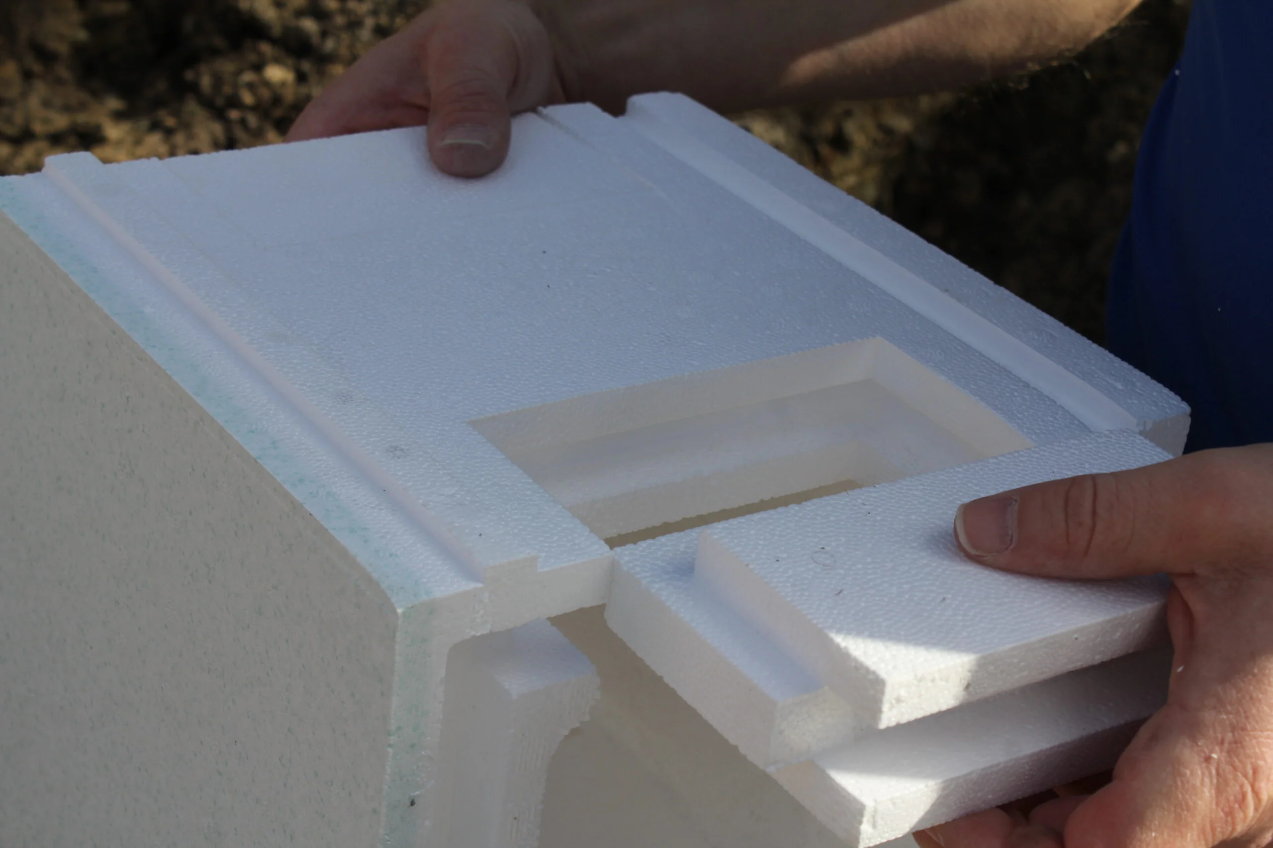 Ändstycke till thermoblock som förhindrar betongen att rinna ut under gjutningen.