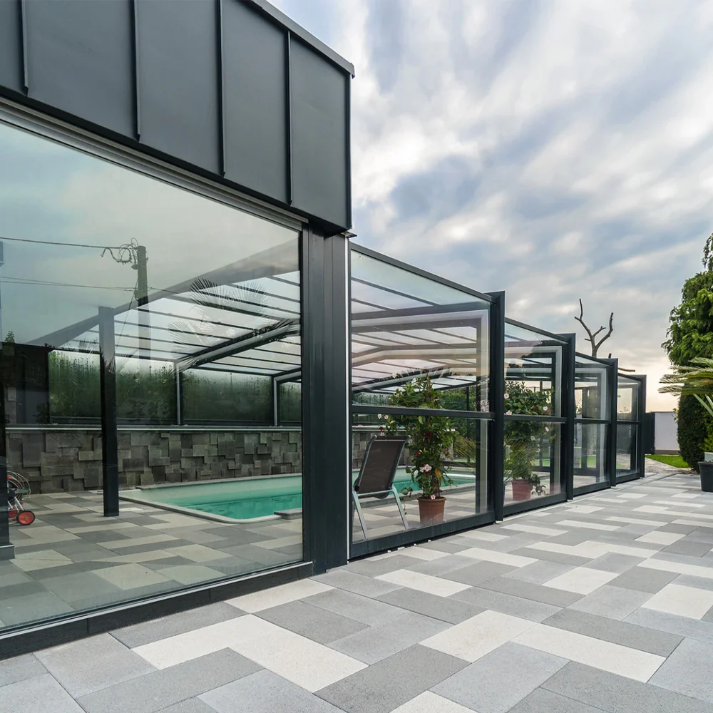 Atlas är ett lyxigt pooltak utan skenor som alltid platsmonteras.