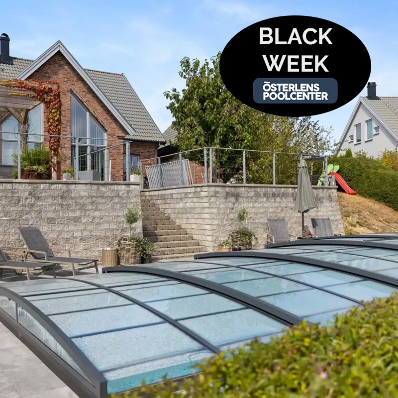 Den stilrena och låga designen gör att taket smälter in naturligt i din trädgård och ger ett diskret skydd för din pool året runt. Trots den låga höjden finns det gott om rum för dig att simma under taket. När pooltaket är stängt är det barnsäkert och kan endast öppnas med nyckel.