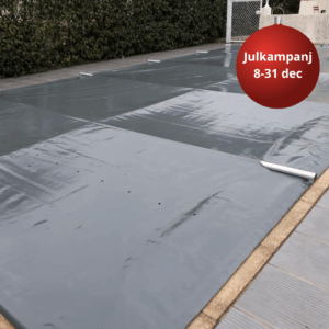 Poolskyddet kommer i tolv standardstorlekar och i färgerna antracit eller grått. Snabbfästen och vev ingår som standard.