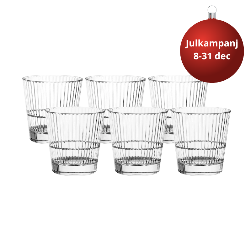 Glaset har en unik randig design som ger glaset ett väldigt exklusivt utseende samt att eventuella repor eller vattenfläckar trollas bort.