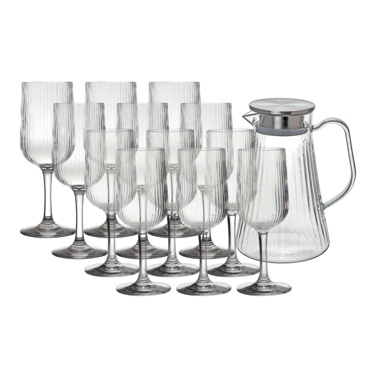 Alla våra modeller är tillverkade i polykarbonat eller TRITAN av högsta kvalitet. Vi erbjuder många sorters glas. Modellerna är lämpliga för servering av alla typer av drycker som vin, champagne, läsk, vatten, öl och drinkar.