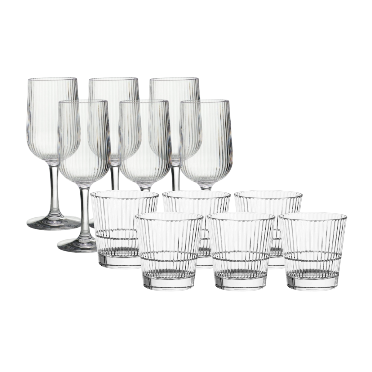 Njut av vin utan risk för krossade glas! Vitvinspaketet innehåller 6 glas av varje sort (totalt 12 okrossbara glas i plast):