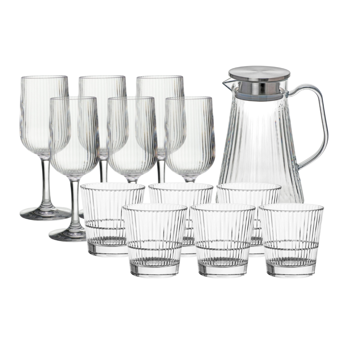 I Stripe serien ingår Stripe 355 R, Stripe Vin 38cl, Stripe Vin 30cl, Stripe HB 40cl, Stripe Champagne 18cl samt Stripe Pitcher 1,5l.