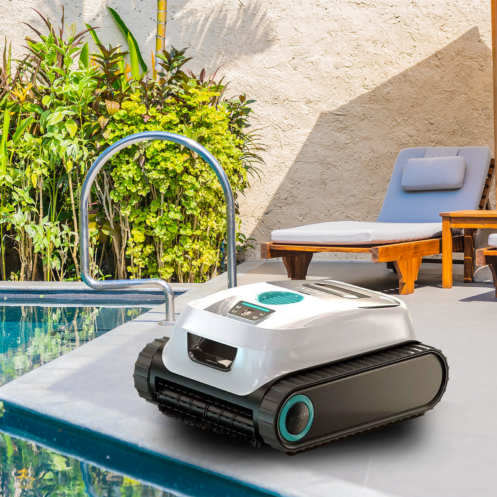 Med 4 smarta rengöringsprogram, intelligent navigering och stark sugkraft håller den poolen skinande ren – helt automatiskt utan kabeltrassel.