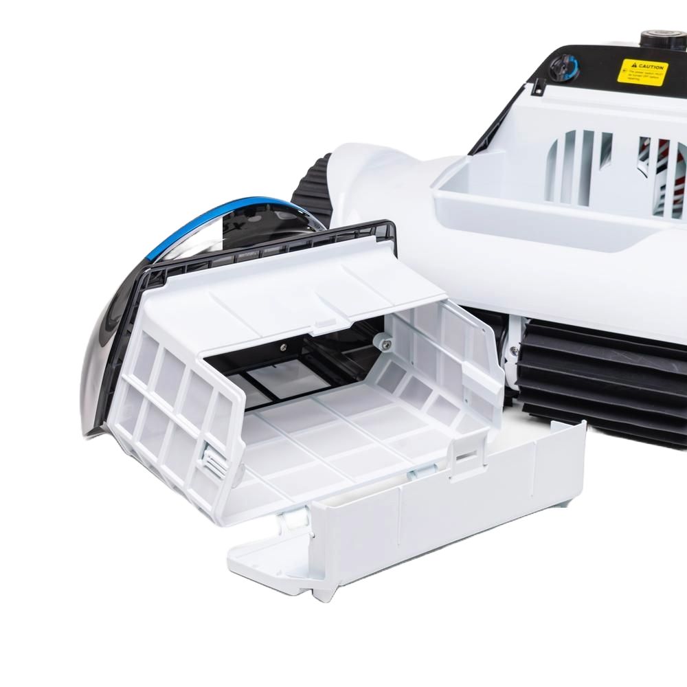 Den stora finkorgsfiltern på 120 µm fångar upp sand, pollen och småblad, vilket ger kristallklart och hygieniskt badvatten. När rengöringen är klar ställer sig roboten automatiskt vid poolkanten, redo att enkelt lyftas ur med den medföljande kroken – inga blöta armar, inget krångel.