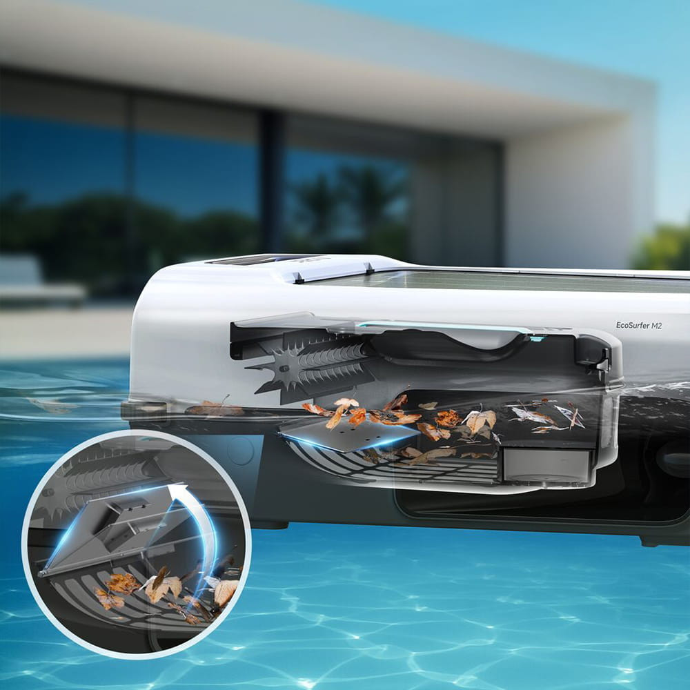 Aiper EcoSurfer M2 är den ultimata ytrengöraren för pooler, designad för att hålla vattnet rent dygnet runt med minimal ansträngning. Med sin lättviktiga konstruktion på 5,7 kg är den enkel att hantera, installera och ta upp ur poolen.