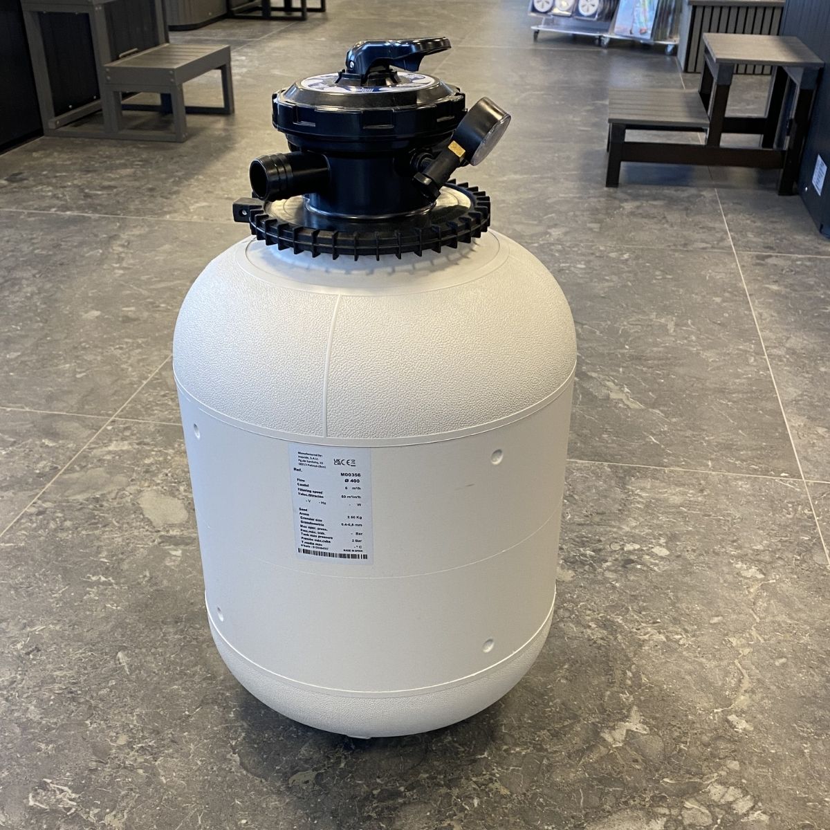 Filtertanken är tillverkad i ABS plast och är resistent mot atmosfäriska förhållanden och kemiska produkter.