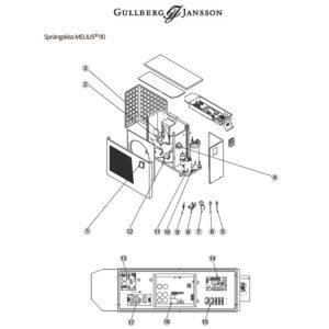 | Reservdelar | 1. Komplett LED V/Q/X/S-serien, Intus, Bonum (svart med knappar) – 7011265 , 4. lnverter drive modul Q12, Q15, Q20, X15 R32, Intus – 7011104, 5. Relä HATF903AS30AC220- 7011227, 6. Nätaggregat Q och X inverter R32 – 7011210 , 8. Spole X15, R32, Bonum 25, 35, 45, Intus 60 – 7011209 , 13. Flödesgivare G&J poolvärmepumpar – 7011211, 16. Värmekabel till bottentråg – 72037 |
