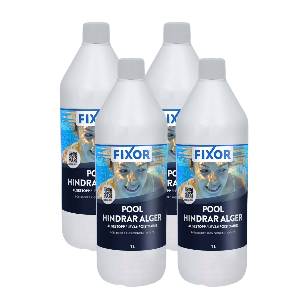 Fixor Hindrar Alger är ett effektivt algmedel som används för att förebygga algtillväxt i poolvatten. Produkten verkar genom att stoppa algsporer innan de hinner utvecklas och bilda synliga algbeläggningar i poolen.