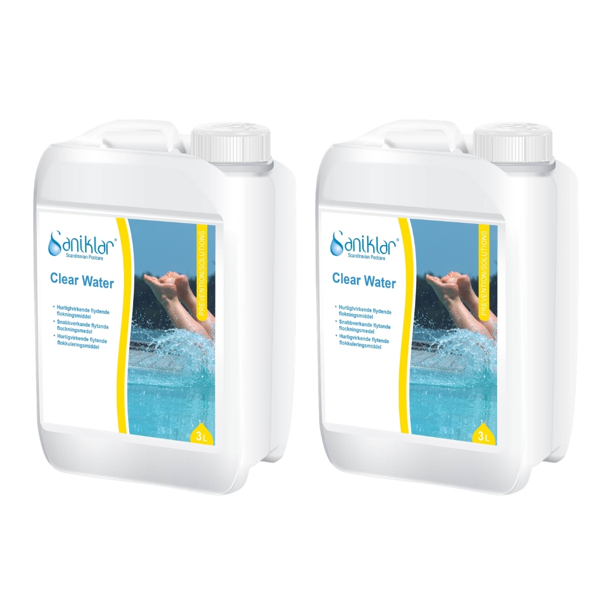 Saniklar Clear Water är ett flytande flockningsmedel som man använder när man snabbt vill göra poolens vatten klarare.