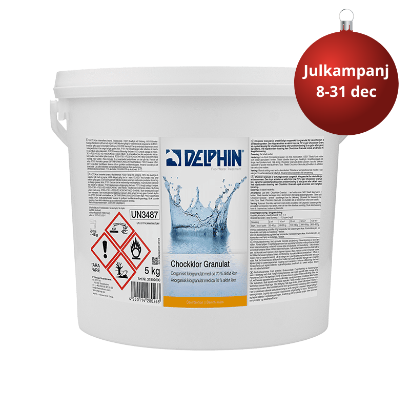 DELPHIN Chockklor granulat är ett desinfektionsmedel med klor (oorganiskt).