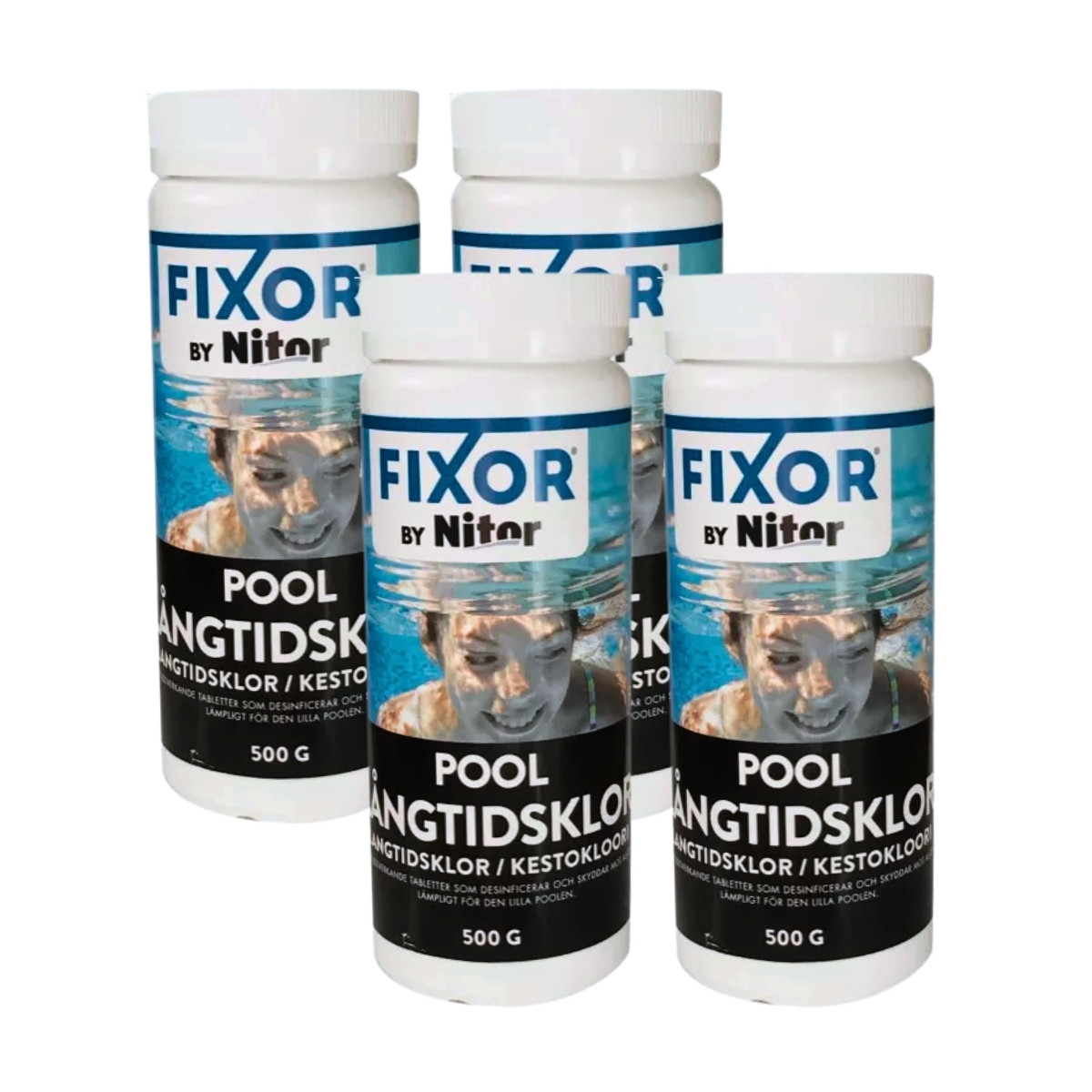 Klorgranulat Pool Fixor by Nitor Långtidsklor med antialg 500g 4-pack