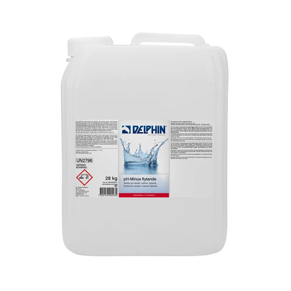 DELPHIN pH-minus sänker pH-värdet i poolvatten. Flytande pH-reglerande medel används främst för saltklorinatorer och automatiska doseringssystem.