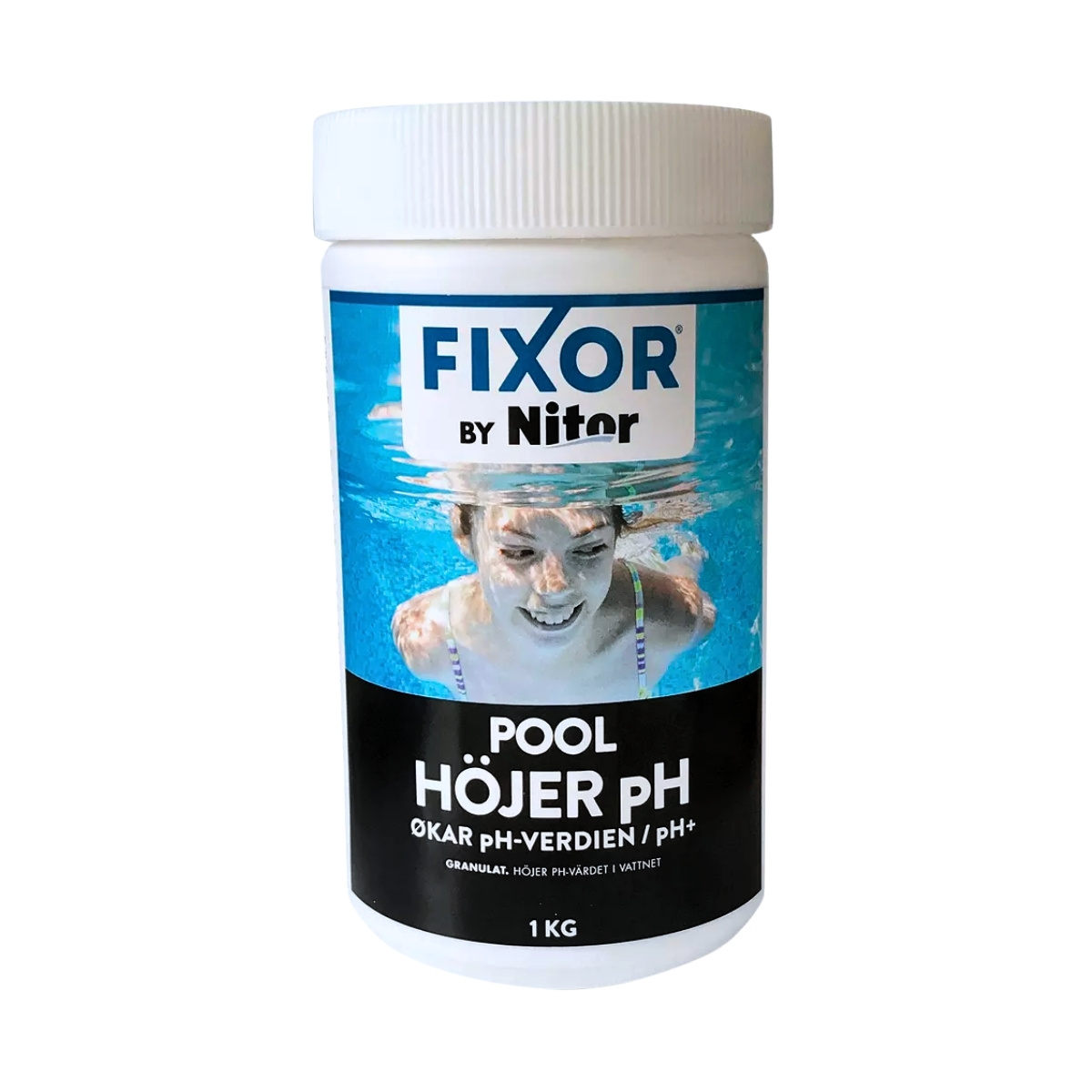 pH-Höjare Pool Fixor by Nitor Granulat används för att höja pH-värdet i poolvattnet när det ligger för lågt. Ett korrekt pH-värde är avgörande för att poolens desinfektionsmedel ska fungera effektivt och för att vattnet ska vara skonsamt mot hud, ögon och poolens utrustning.