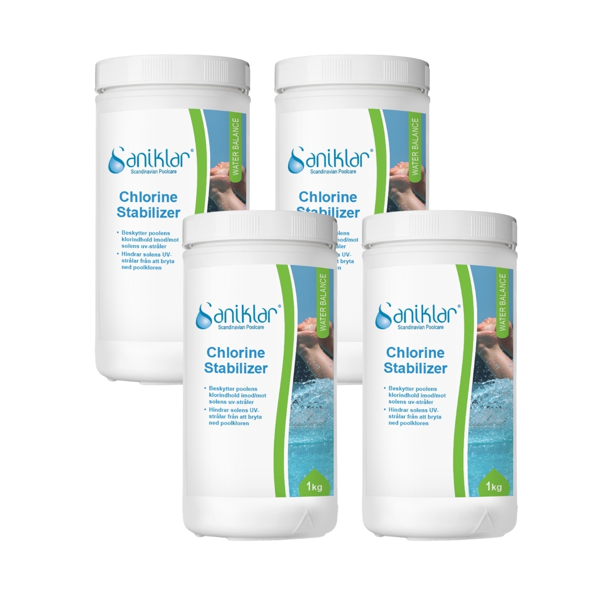 Saniklar Chlorine Stabilizer används enbart i pooler utomhus. Optimal effekt av Saniklar Chlorine Stabilizer får man med ett innehåll på mellan 25 – 40 mg/l.