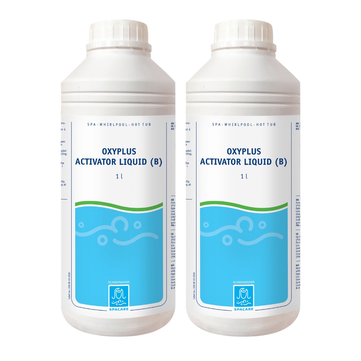 SpaCare Oxy Plus Activator Liquid (B) är ett effektivt långtidsverkande desinfektionsmedel som används tillsammans med SpaCare Active Oxygen Granular (A) för att skapa ett luktfritt alternativ till klor- och bromhaltiga desinfektionsmedel i ditt spabad.