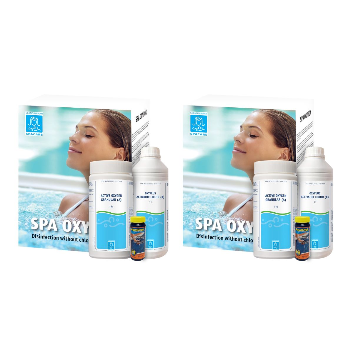 2 st kompletta startpaket aktivt syre för spabad. SpaCare OxyBox är ett modernt, bekvämt och luktfritt alternativ till klor- och bromhaltiga desinfektionsmedel.