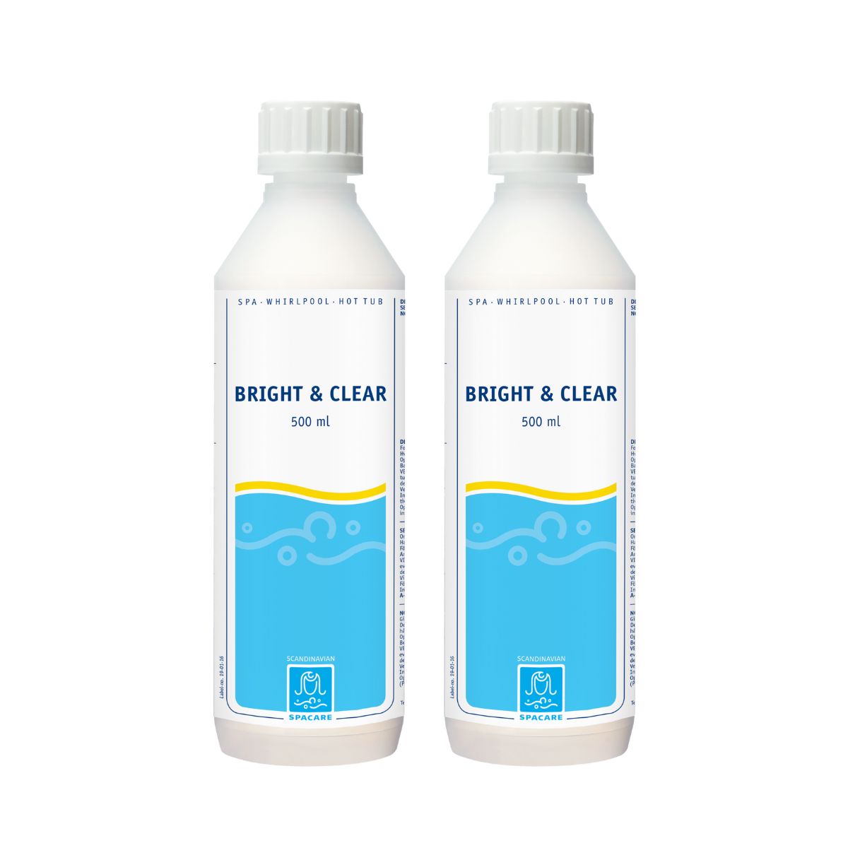 SpaCare Bright & Clear är ett flytande flockningsmedel som får små partiklar i vattnet att samlas, så att det blir lättare för filtret att ta bort dem.