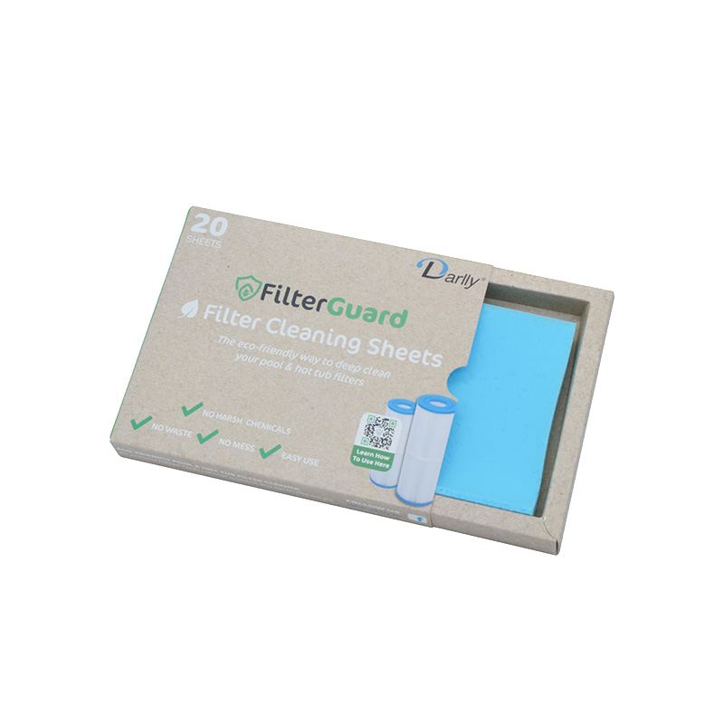 FilterGuard Rengöringsark är speciellt utvecklade för att rengöra de smutsigaste spafilter på djupet med minimal ansträngning. Varje förpackning innehåller 20 st ark som använder aktiva växtbaserade enzymer för att bryta ner smuts, fett och oljor utan kladd eller spill.