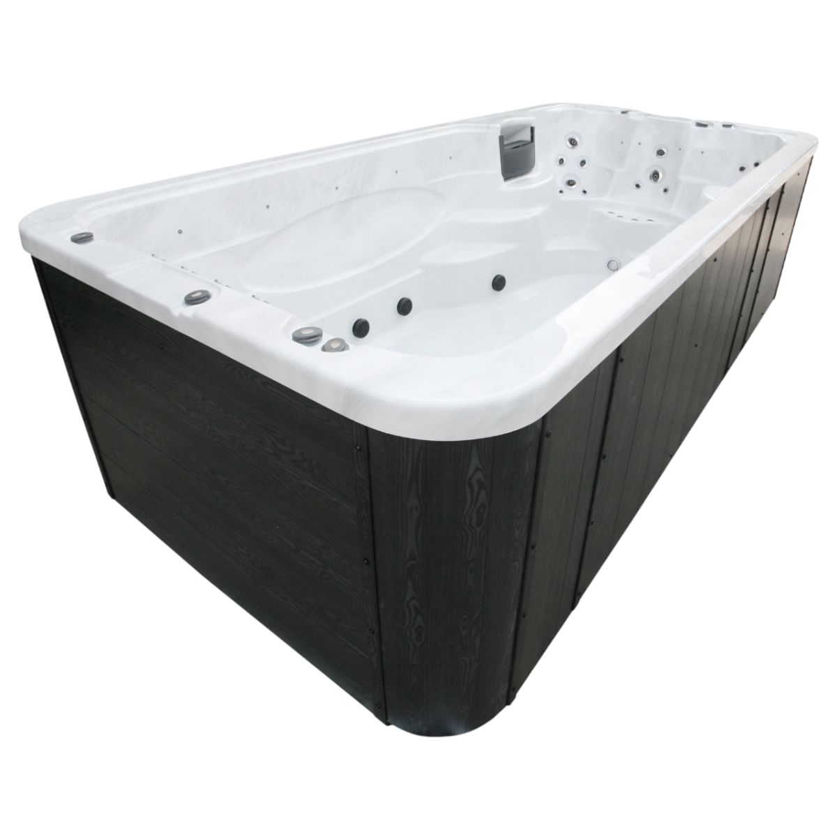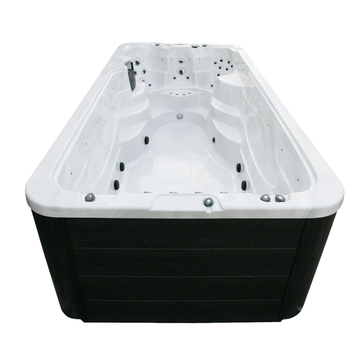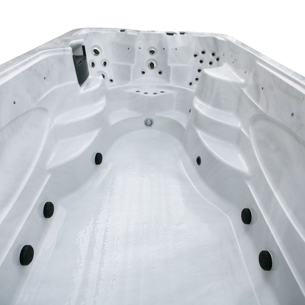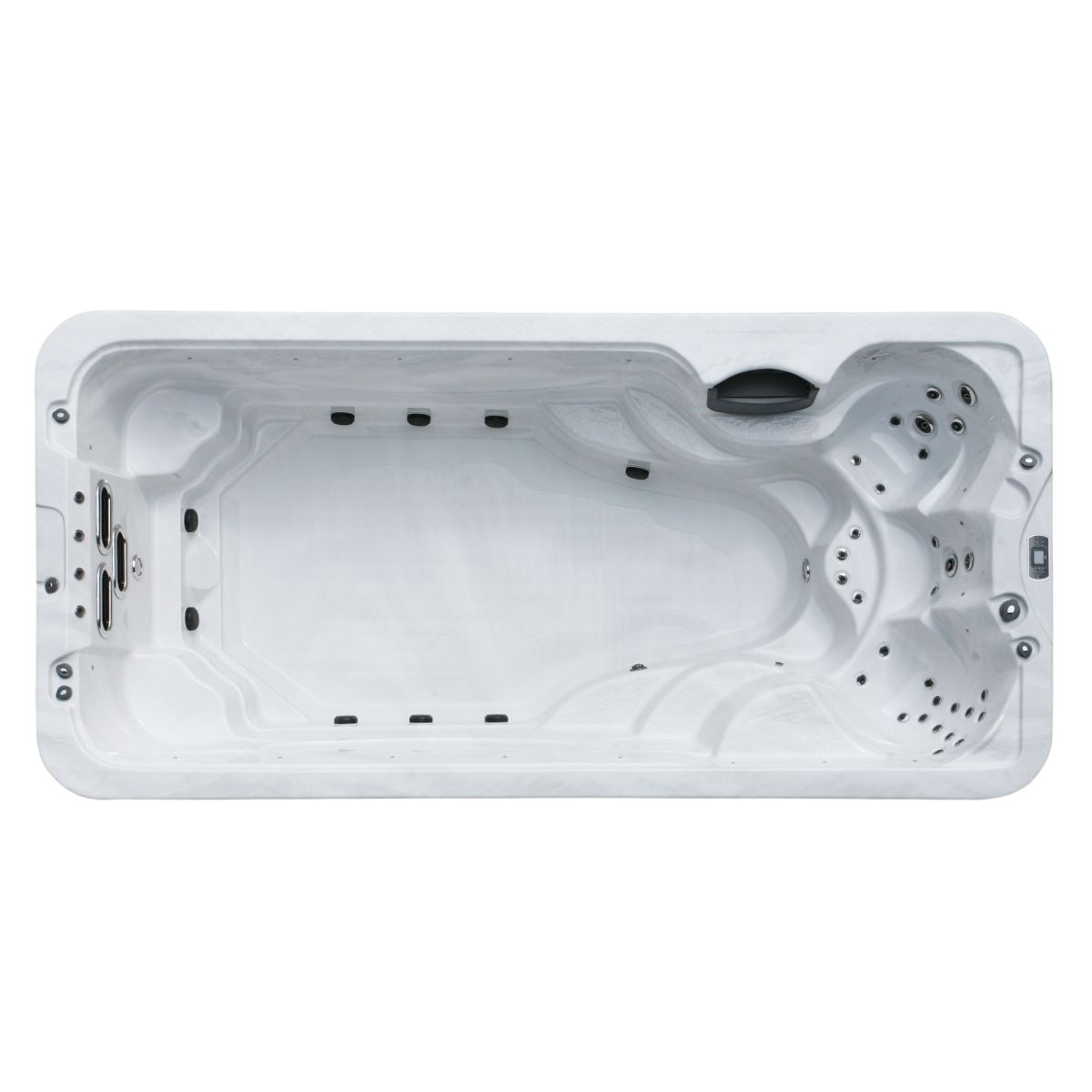 I Portland, som designats i ett helintegrerat system utan avdelare mellan pool- och spadelen, kan du glida ”steglöst” mellan skonsam men effektiv simträning och skön avkoppling. En annan fördel är att ditt swimspa blir en meter kortare och därmed kräver lite mindre plats. När du simmar skapar en reglerbar jetström det motstånd i vattnet som passar din personliga nivå. Väljer du sen att luta dig tillbaks i spaplatserna används samma strömmar och varma välgörande bubblor till att massera och mjuka upp muskler och leder. Det bästa av två världar.