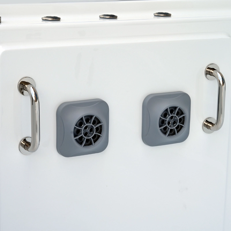 Badet är byggt för nordiskt klimat med energieffektiv isolering och ett isolerat spalock som ingår, vilket bidrar till god värmehållning och låg energiförbrukning året runt. Den robusta konstruktionen med galvaniserad stålstomme, ytterpanel i aluminium och slitstark Aristech-akryl i färgen Alpine White ger lång livslängd och ett stilrent, exklusivt uttryck.