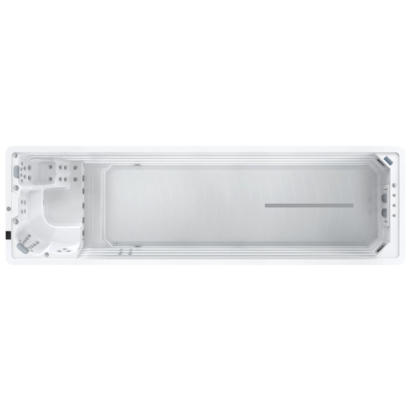 Den stora simdelen är utrustad med Advanced Inverter Swim Technology, som ger autentisk motström och extra kraft för effektiv simning året runt. Tre starka jetpumpar och fyra justerbara munstycken säkerställer en jämn och stabil motström, medan de fyra sittplatserna gör badet perfekt för återhämtning och familjetid.