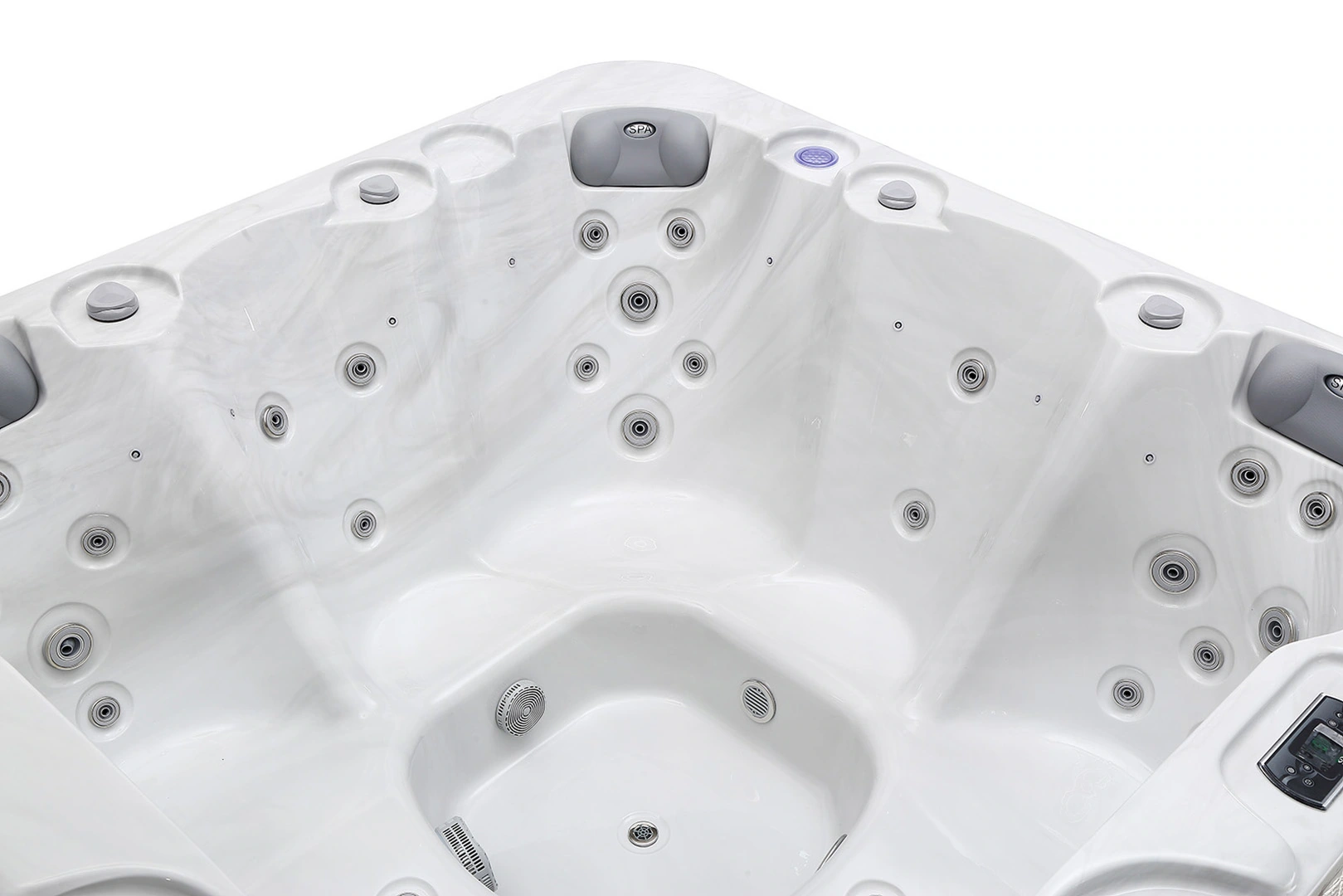 Rymligt spabad med kvalitativa komponenter till ett kanonpris! RLX Spa RS40 är ett av få spabad på marknaden i sin storlek som är utrustade med två liggplatser. Badet har dessutom ett ordentligt djup och är rikligt utrustat med massagemunstycken. Spabadets komponenter kommer från välkända fabrikat och håller hög kvalité. Tack vare sin isolering är RLX Spa RS40 väldigt energisnål och kan utan bekymmer hålla sig varmt året om i vårt nordiska klimat.