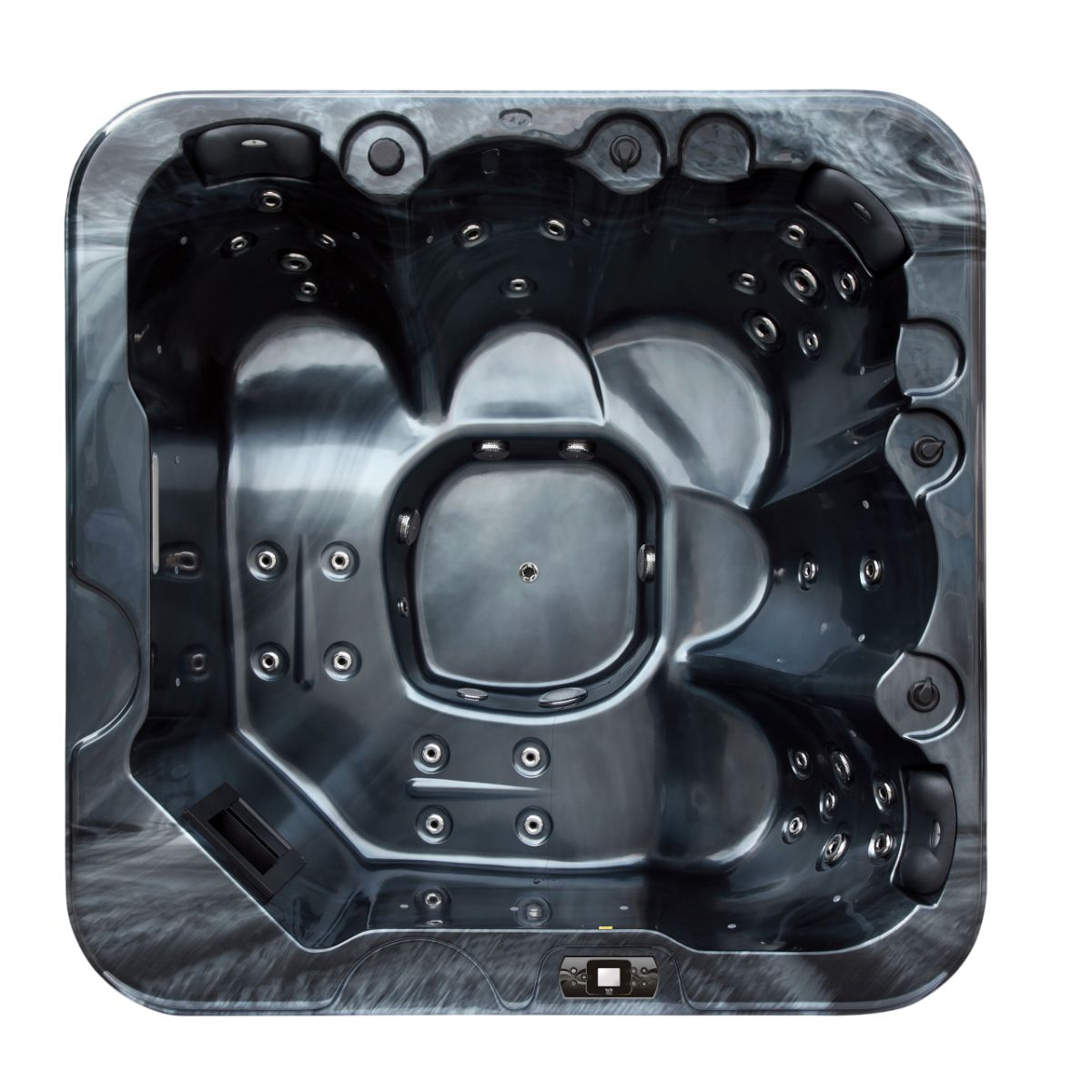 Spabadet är utrustat med Gecko In.YE-3 styrsystem och K500-display som ger enkel och tydlig kontroll över temperatur och funktioner.