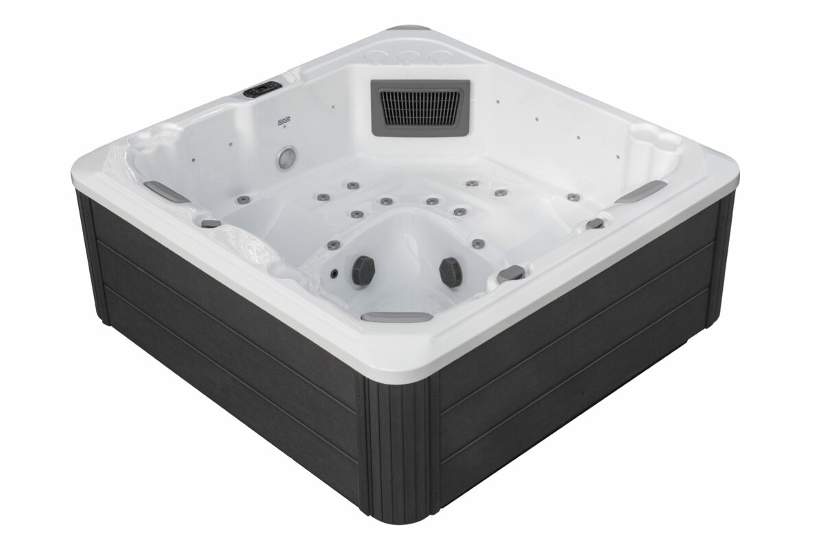 Spabad Blizz är ett stilrent och kraftfullt spabad på 2×2 meter med plats för fem personer – två sittplatser och två bekväma ligglounger.