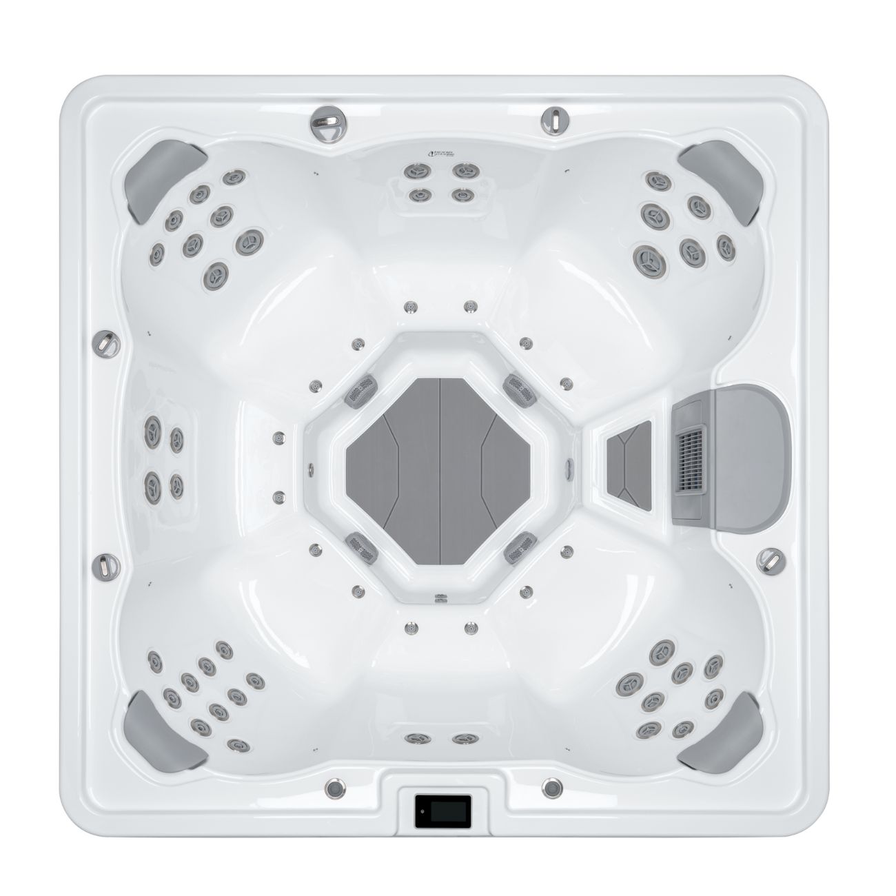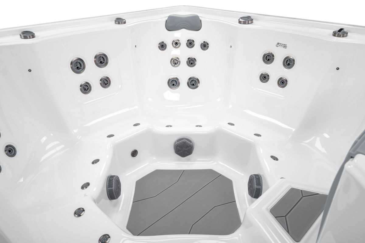 Med 56 kraftfulla massagejets, digital display, UV-rening och stämningsfull LED-belysning kombineras komfort med enkel styrning.