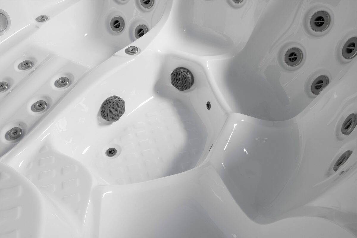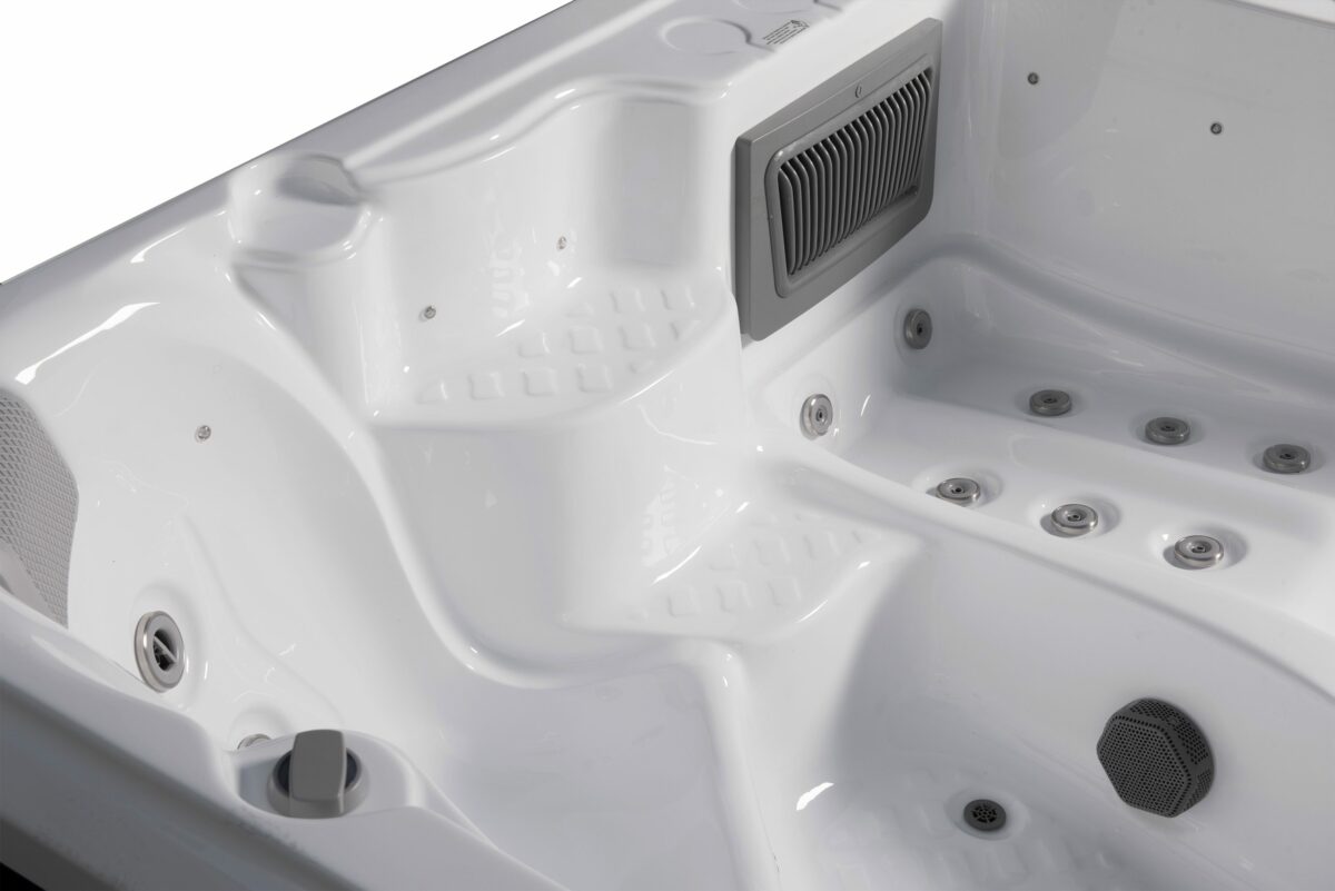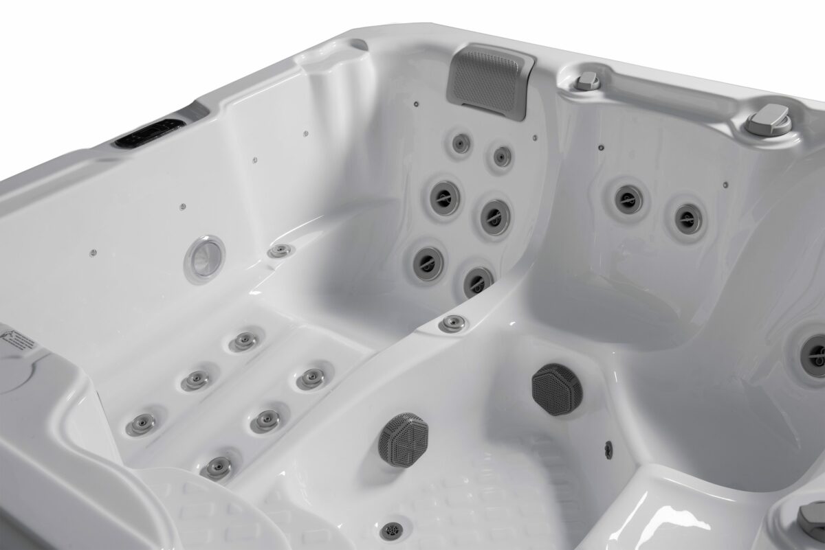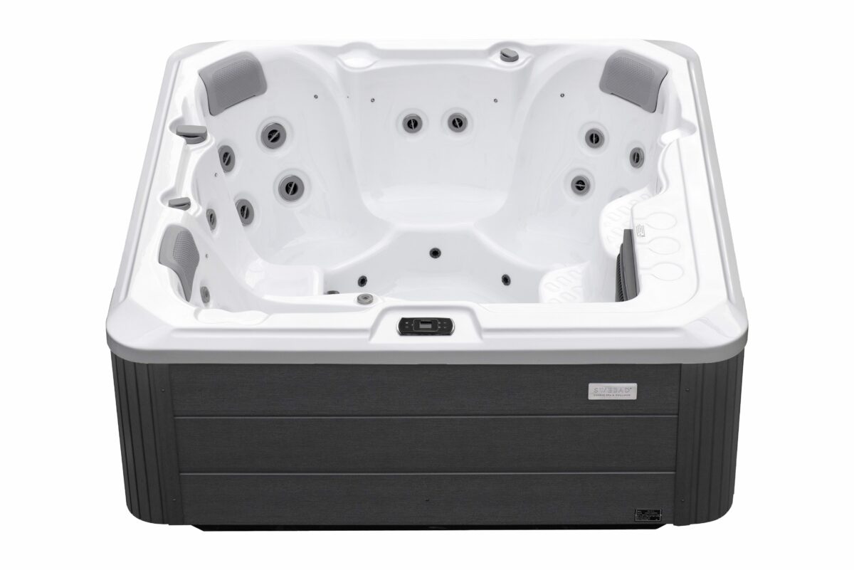 Swebad Nordic är ett kompakt och kraftfullt spabad på 2×2 meter med 5 platser, 4 sittplatser och 1 ligglounge, och 28 kraftfulla massagejets.