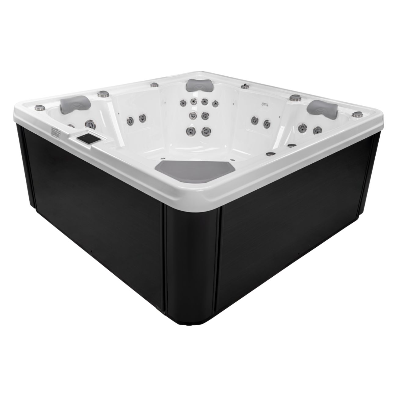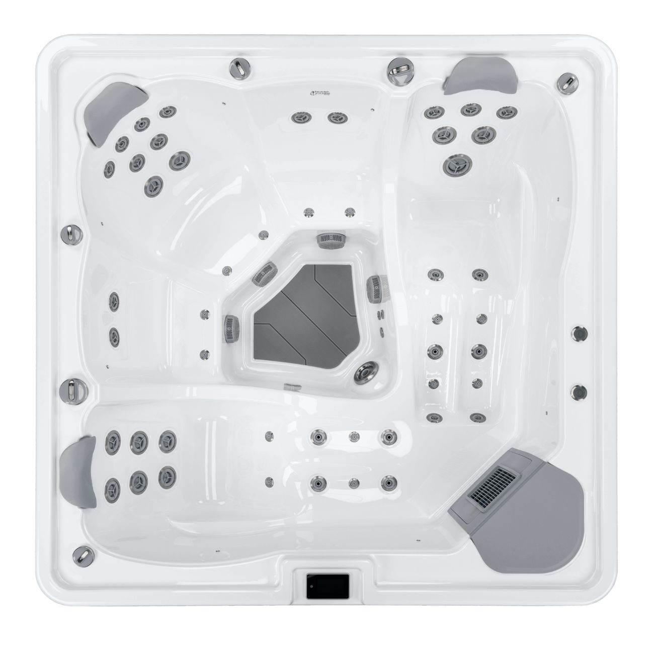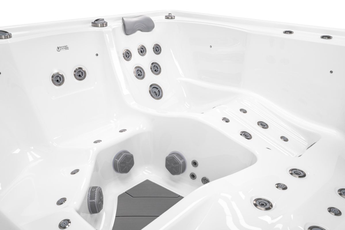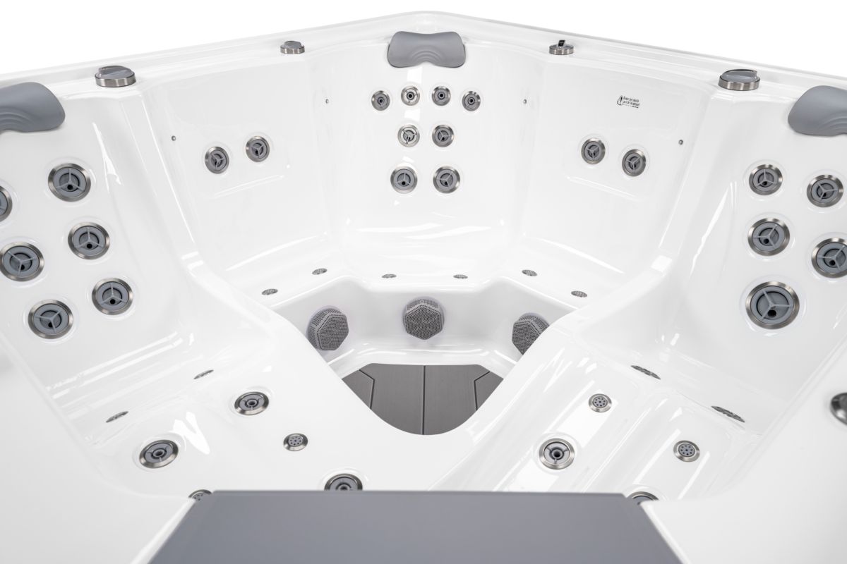 Polar är ett rymligt spabad som kombinerar stilren design med genomtänkt komfort. Med två ergonomiska ligglounger och tre bekväma terapisäten passar det lika bra för familjen som för par som vill koppla av tillsammans.