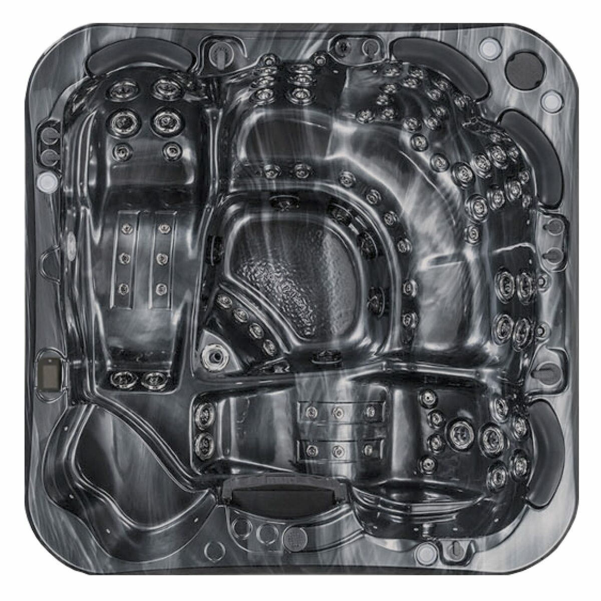 De totalt 81 massagejetsen – fördelade på vatten-, luft- och laminarjets – ger en varierad och anpassningsbar massageupplevelse, från djup muskelterapi till mjuk avkoppling. Badet är även utrustat med en praktisk avsats som fungerar både som svalkande plats och säte för mindre barn.