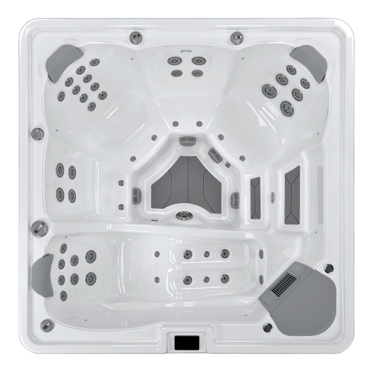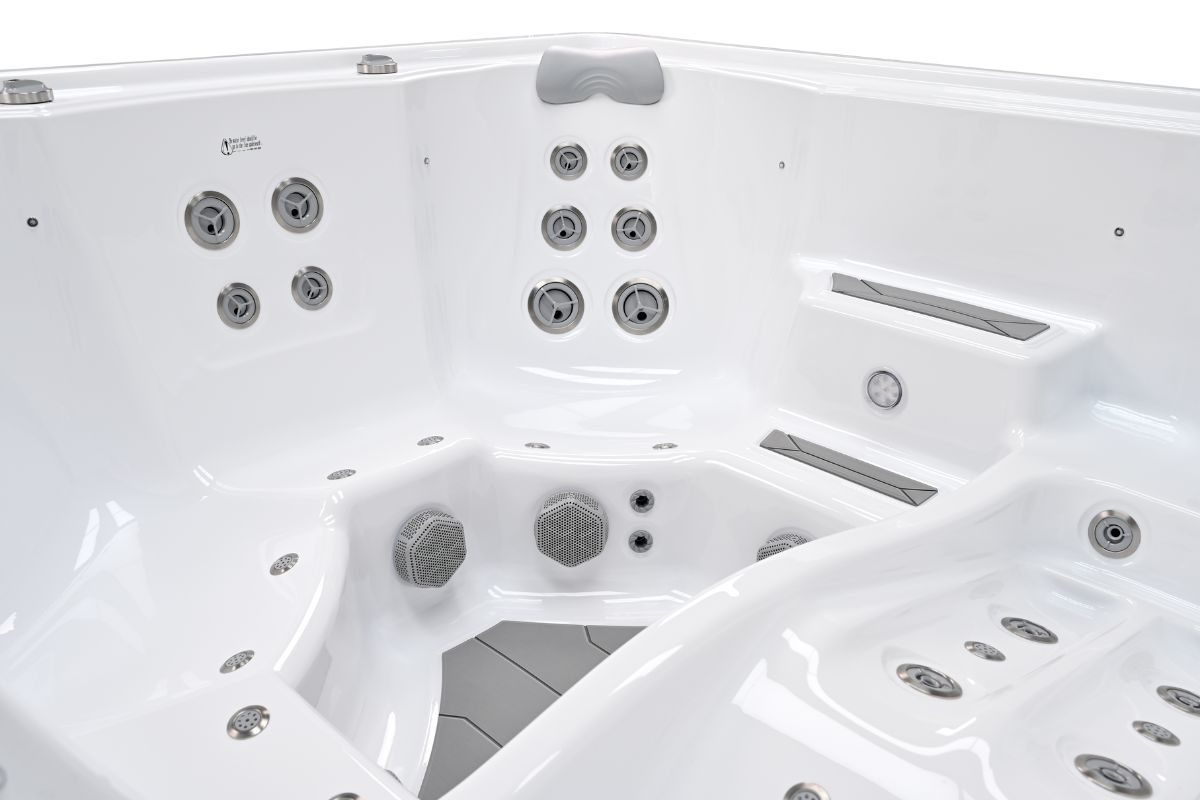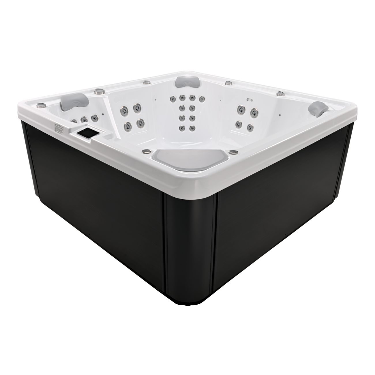 Med 49 kraftfulla massagemunstycken, digital display, UV-rening och LED-belysning får du en förstklassig massageupplevelse och kristallklart vatten året runt.