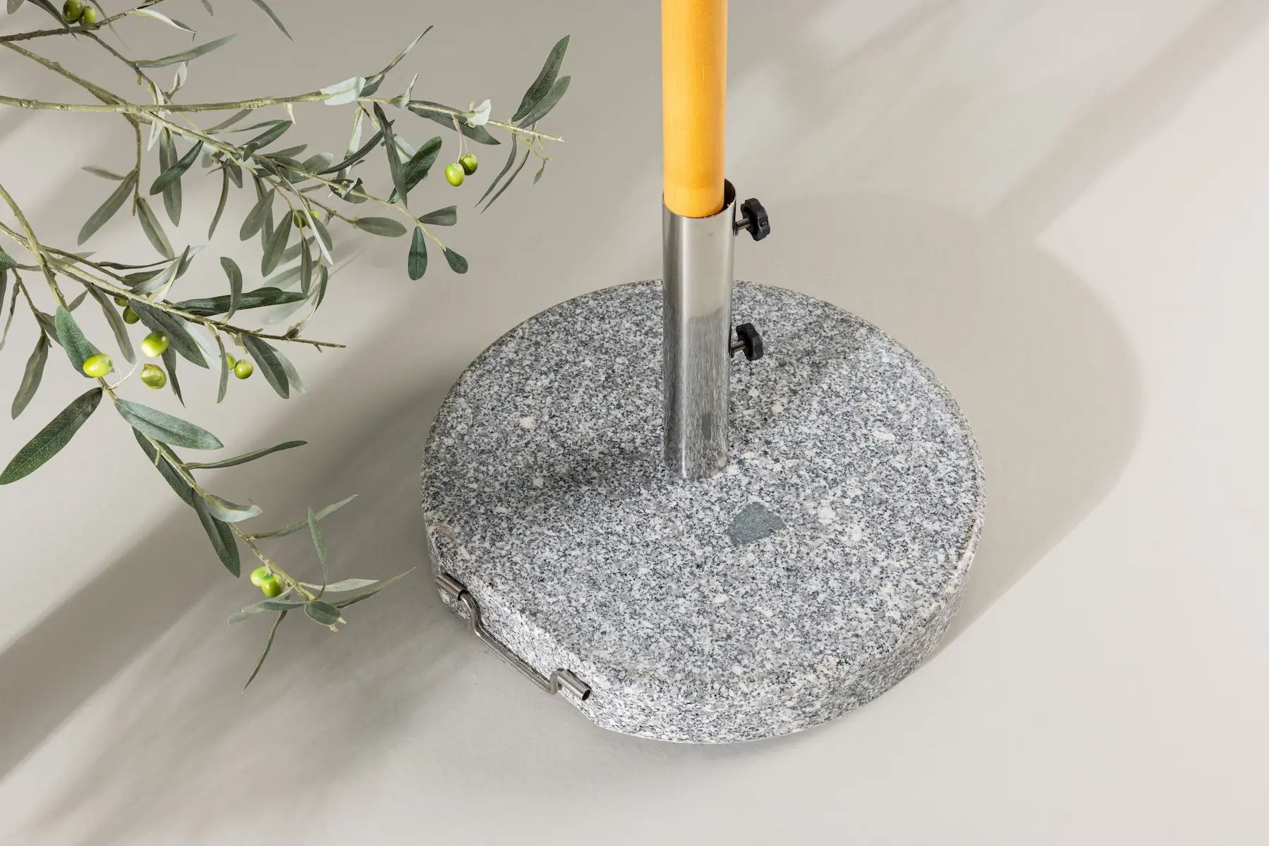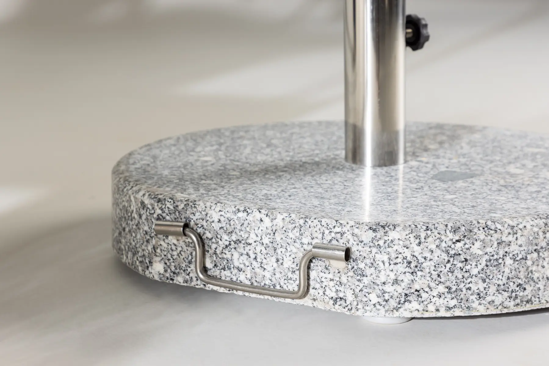 Denna stabila parasollsten på 40 kg kombinerar funktion och design. Tack vare de praktiska hjulen och det integrerade handtaget kan den enkelt flyttas dit du behöver den.