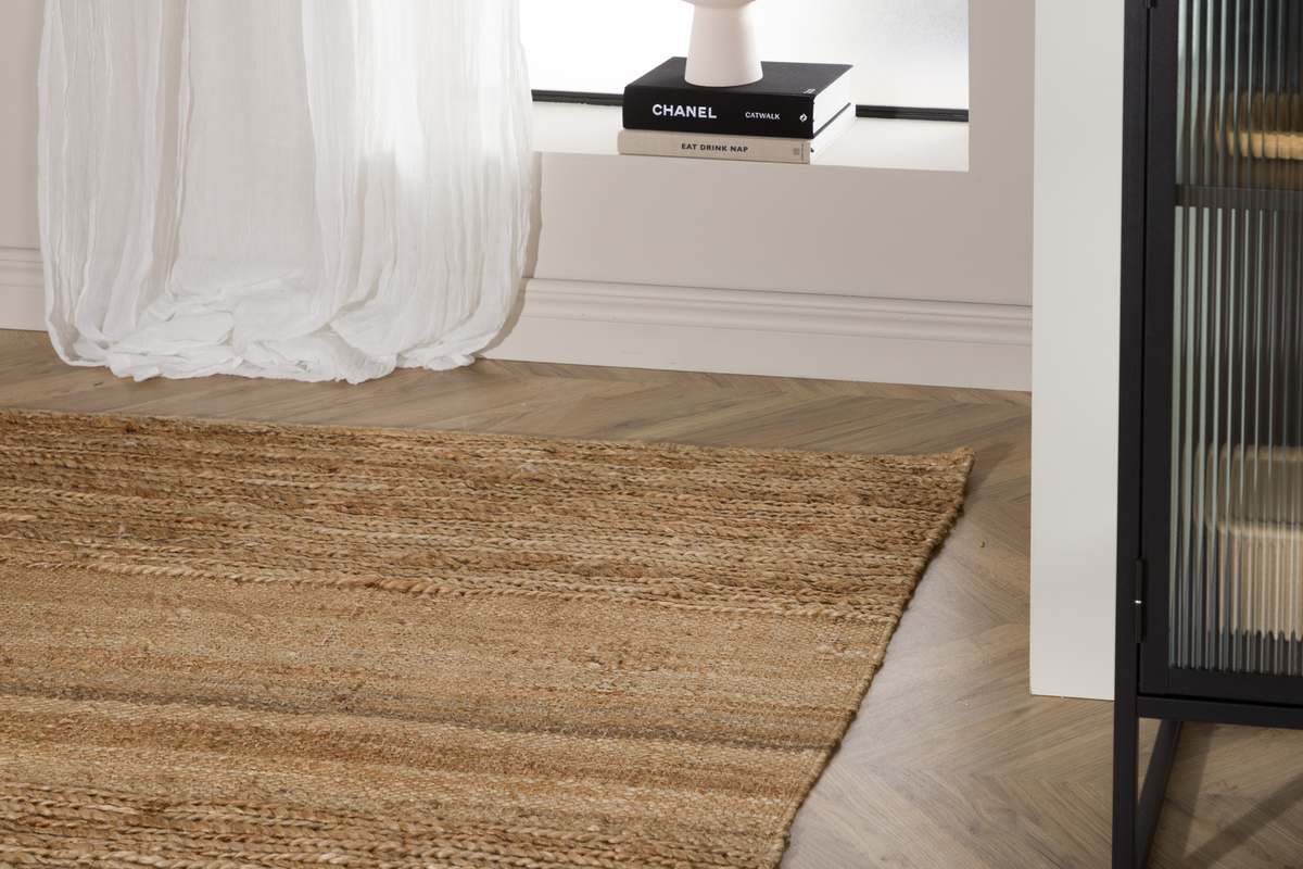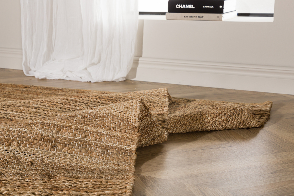 Tillverkad i jute får mattan en slitstark och tålig yta som passar bra i hem med mycket rörelse. Den stora storleken på 400×300 cm gör den idealisk under en soffgrupp, matplats eller i större öppna ytor.