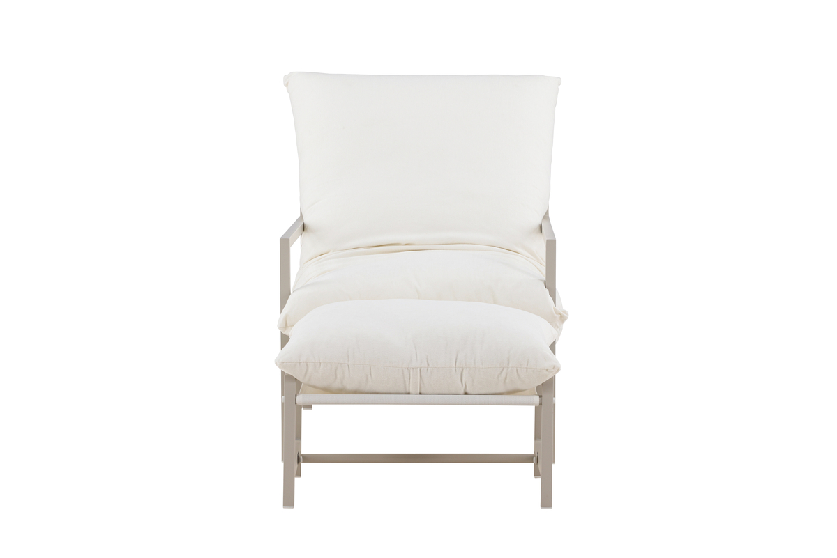 Med den medföljande fotpallen kan du enkelt luta dig tillbaka och njuta fullt ut – oavsett om du läser en bok, tar en paus i solen eller bara vill koppla av.