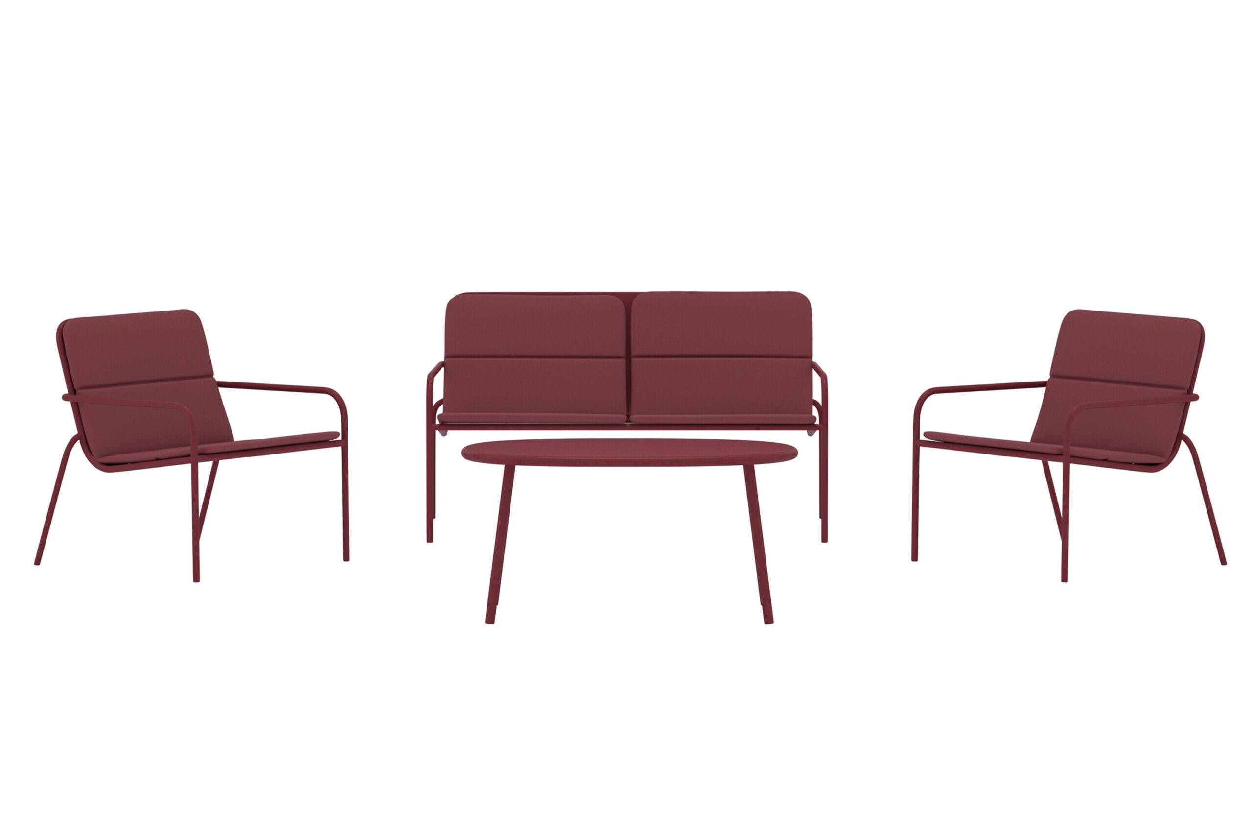 Fourni soffgrupp är en modern och stilren möbelgrupp i en djup burgundyfärg som ger uteplatsen en elegant och unik karaktär. Gruppen består av en soffa, två fåtöljer och ett matchande bord i samma färgton, vilket skapar en enhetlig och harmonisk helhet. De bekväma sitsarna med mjuka dynor gör att du gärna sitter kvar länge, oavsett om det är för kaffe, samtal eller kvällsmys. Fourni soffgrupp är det perfekta valet för dig som vill kombinera komfort med en trendig och uttrycksfull design.
