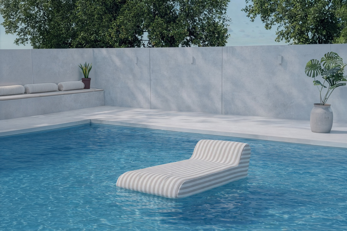 Den ergonomiskt formade designen med integrerad kudde gör denna solstol extra bekväm, oavsett om du vill sola, läsa eller bara koppla av. Solsängen är dessutom särskilt anpassad för användning i och vid pool – den smarta konstruktionen gör att vatten leds bort istället för att samlas, vilket håller ytan behaglig även under varma dagar.