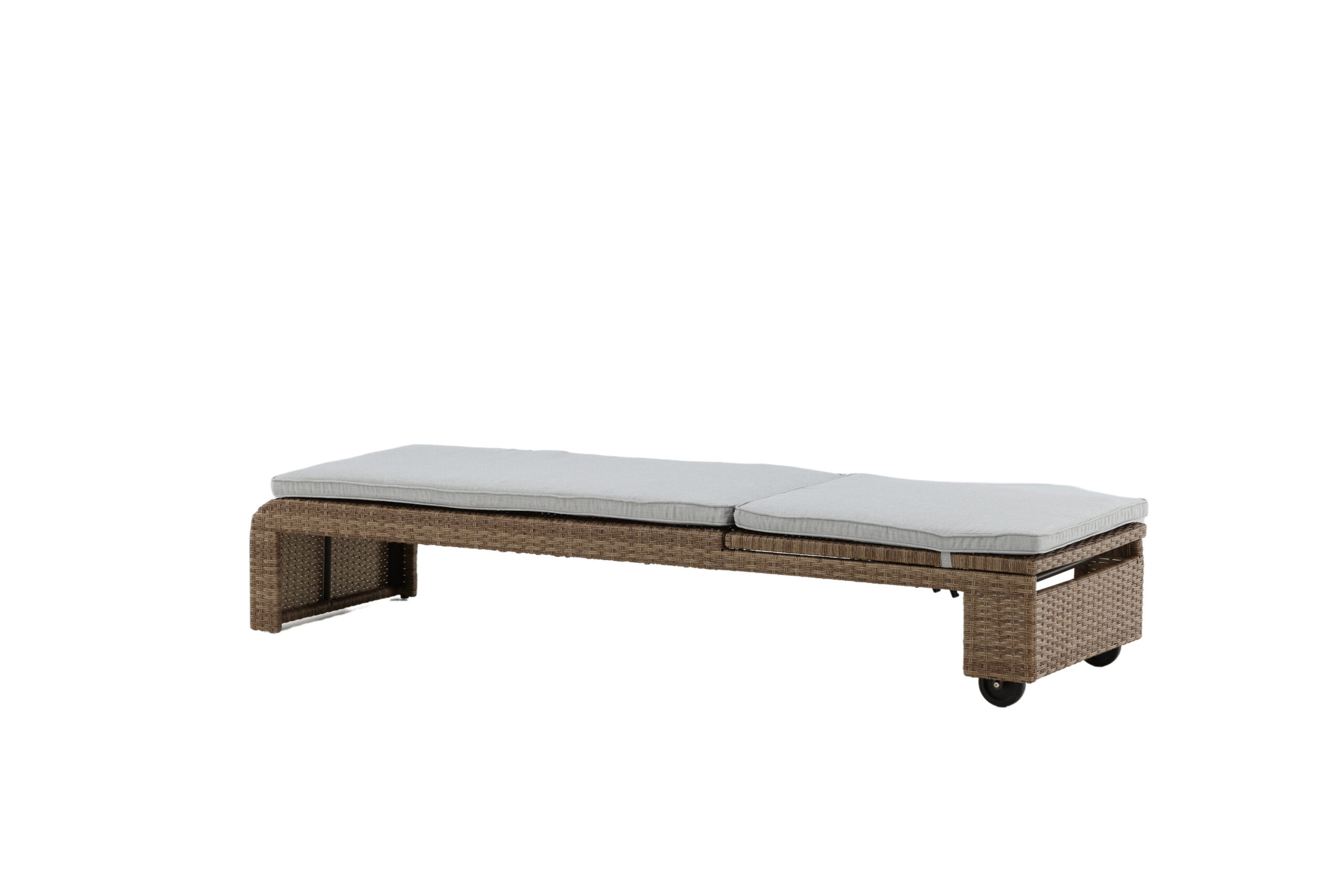 Skapa en lyxig oas på din uteplats i sommar med den här solsängen från serien London! Designen är genomtänk med en stilren look och praktiska funktioner. Här får du naturfärgad solsäng i konstrotting med vit dyna, hjul och justerbart ryggstöd. Välj själv om du vill sitta upp och läsa en bok eller sträcka ut dig i viloposition och njuta av värmen från solen.