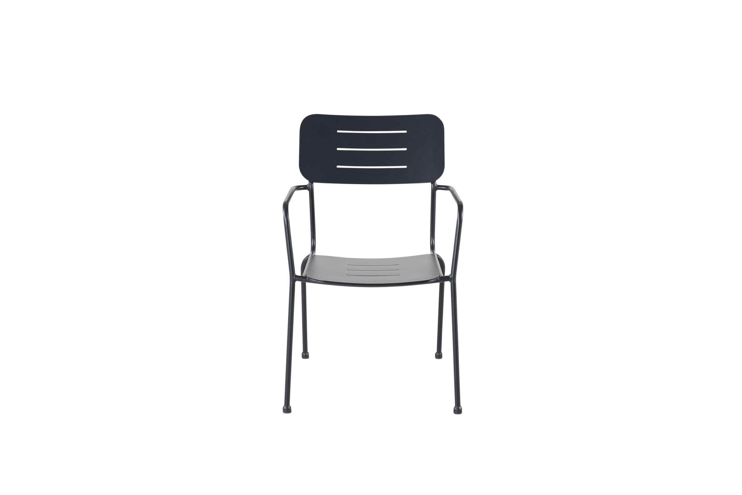 Nicke är en stilren och enkel stol i svart stål som passar utmärkt i både uterummet som på altanen. Den smala designen gör stolarna lättanpassade och enkla att möblera. Matcha med ett läckert matbord och njut av måltider utomhus i sommar! Stolen är stapelbar.
