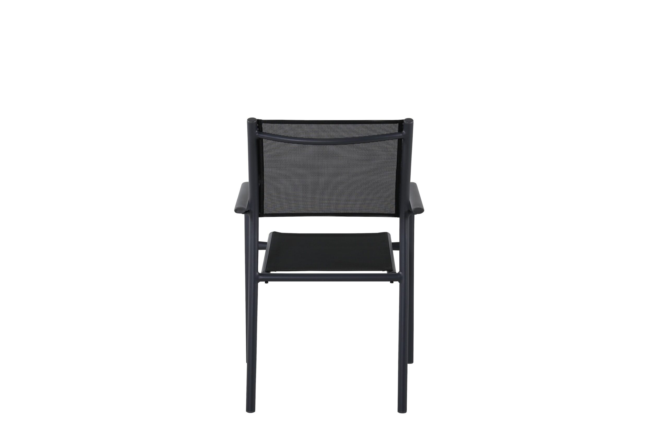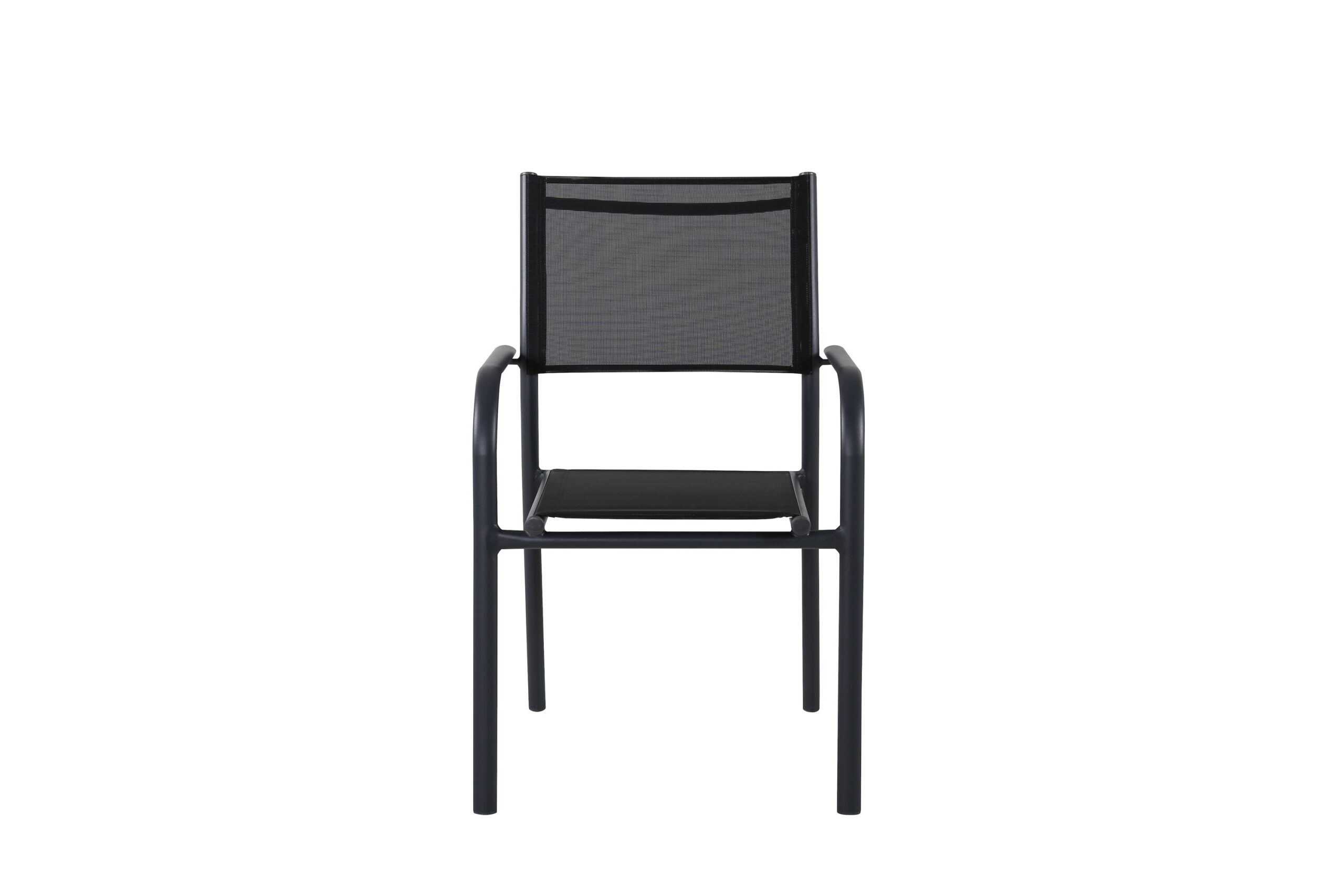 Möblera uteplatsen praktiskt med en matstol i stilren svart kulör från serien Santorini. Tillverkad av aluminium med en svart sits i textilene. Stolen är stapelbar, för smidig förvaring. Här får du en robust stol som kommer ge dig många härliga sommarmiddagar framöver!