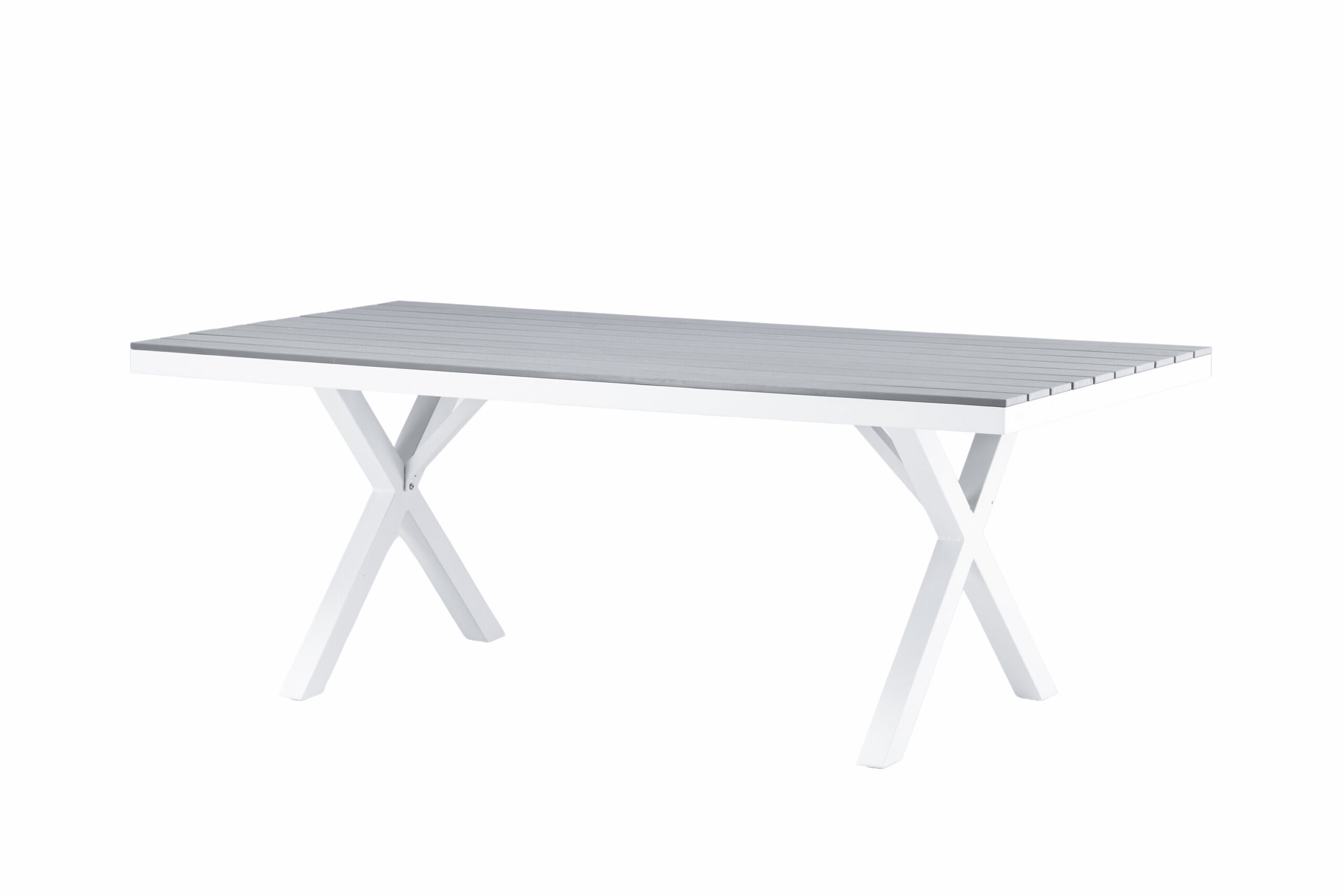 Matbord från serien Garcia i klassisk design med en rektangulär bordsskiva i dekorativ aintwood – lika tåligt som stilrent! Stommen är i vit aluminium som är lättviktigt och gör bordet enkelt att flytta omkring. Bordet lämpar sig utmärkt för utomhusbruk och passar därför lika bra i uterummet som i trädgården. Matcha med våra matstolar i samma serie för en komplett look och skapa ett iögonfallande blickfång på din uteplats. Här kan du samla nära och kära för strålande måltider i sommar!